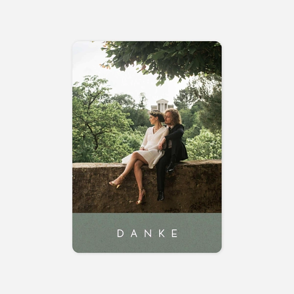 Gestalten Sie eine persönliche Dankeskarte Hochzeit mit Ihrem schönsten Hochzeitsfoto! So werden Ihre Gäste nochmal an den schönen Tag erinnert. Unsere Danksagungskarten lassen sich mit unserem praktischen Online-Editor von Ihnen selbst online gestalten, Ihr Foto können Sie ganz einfach per Drag-and-drop hinzufügen. Außerdem besteht die Möglichkeit, die passenden Umschläge und Aufkleber für Ihre Dankespost direkt mitzubestellen. So können Sie jedes Detail ganz nach Ihrem Geschmack bestimmen und Ihren Hochzeitsgästen eine besonders persönliche Dankeskarte Hochzeit senden.