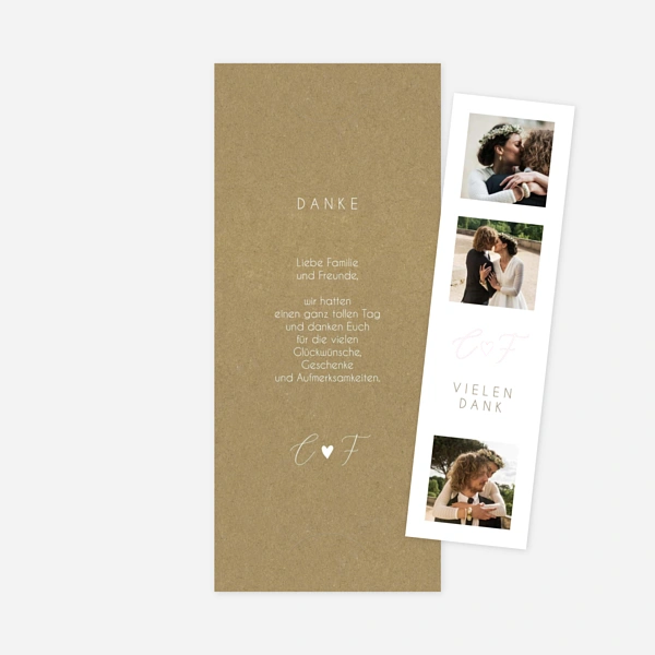 Nachhaltige Dankeskarten Hochzeit im angesagten Kraftpapier-Look