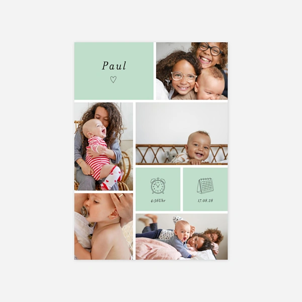 Wenn Sie Ihr Umfeld mit einer außergewöhnlichen Geburtskarte für Jungen überraschen möchten, bieten wir Ihnen eine große Auswahl an originellen Karten. Wählen Sie aus modernen oder eher klassischen Modellen, was am besten zu Ihrem Geschmack passt. Mit einem unserer niedlichen Designs werden Sie garantiert einen bleibenden Eindruck hinterlassen. Passen Sie Ihr Lieblingsmodell mithilfe unseres Karten-Konfigurators an.