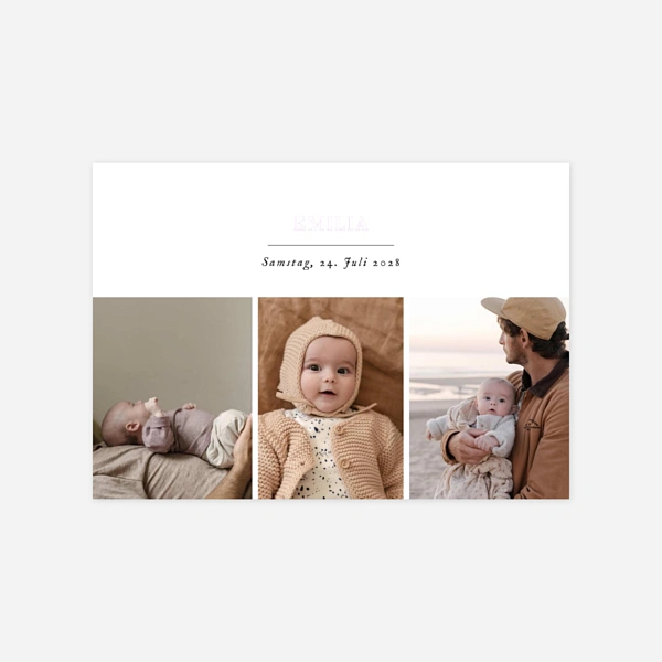 Alle Modelle werden auf ausgewählten Papieren gedruckt und lassen sich individuell personalisieren, sodass Ihre Geburtsanzeige ganz natürlich Ihren eigenen Stil widerspiegelt. Entdecken Sie eine Kollektion, die Tradition und Moderne verbindet – für ein Erinnerungsstück, das die ersten Momente Ihres Familienglücks mit schlichter, warmer Schönheit festhält.