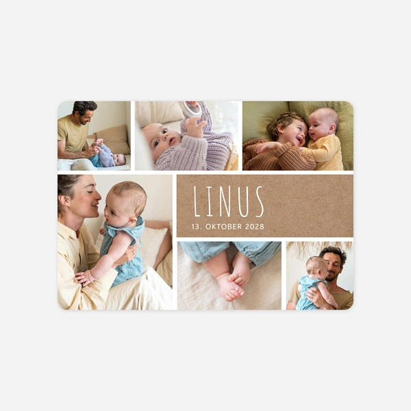 Entdecken Sie jetzt unsere vielfältige Selektion an schlichten Designs, die Ihre schönsten Babyfotos auf hochwertigem Papier in Kraftpapier-Optik besonders schön zur Geltung bringen. Die grobe Struktur vermittelt eine besondere Haptik und eine natürliche Optik, die zu allen Fotos und Designs passt und Ihre Geburtskarte zu einem besonderen Hingucker werden lässt! Melden Sie sich gerne bei Fragen zur Gestaltung Ihrer Kraftpapierkarten bei unseren freundlichen Kundenberatern. Wir unterstützen Sie dabei, die perfekte Geburtskarte zu finden!