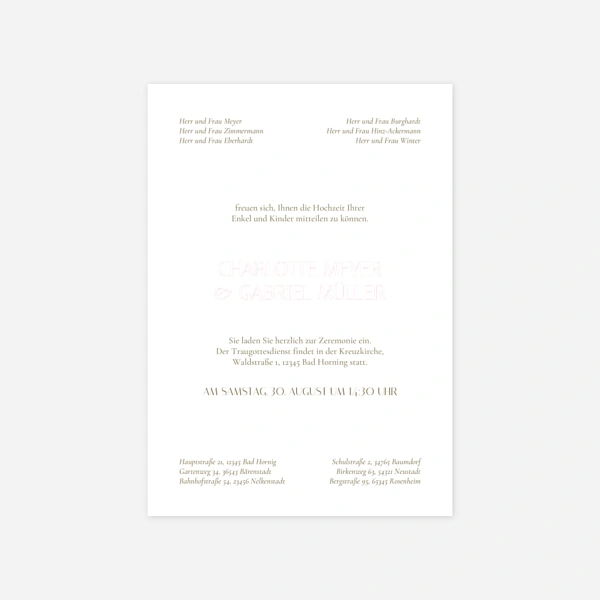 Entscheiden Sie sich für zeitlose Eleganz, hochwertige Qualität und eine Gestaltung, die Ihren großen Tag stilvoll ankündigt!
