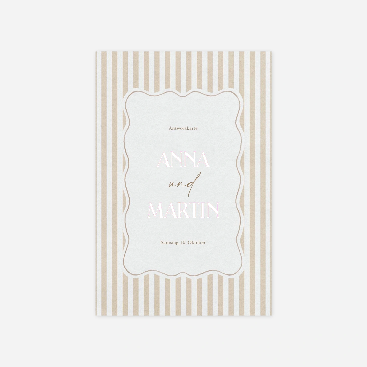 Erleichtern Sie die Organisation Ihres großen Tages mit der Antwortkarte "Baumwollblüte". Sie wird Ihrer Einladung beigelegt und ermöglicht Ihren Gästen eine unkomplizierte Rückmeldung zu ihrer Teilnahme.
