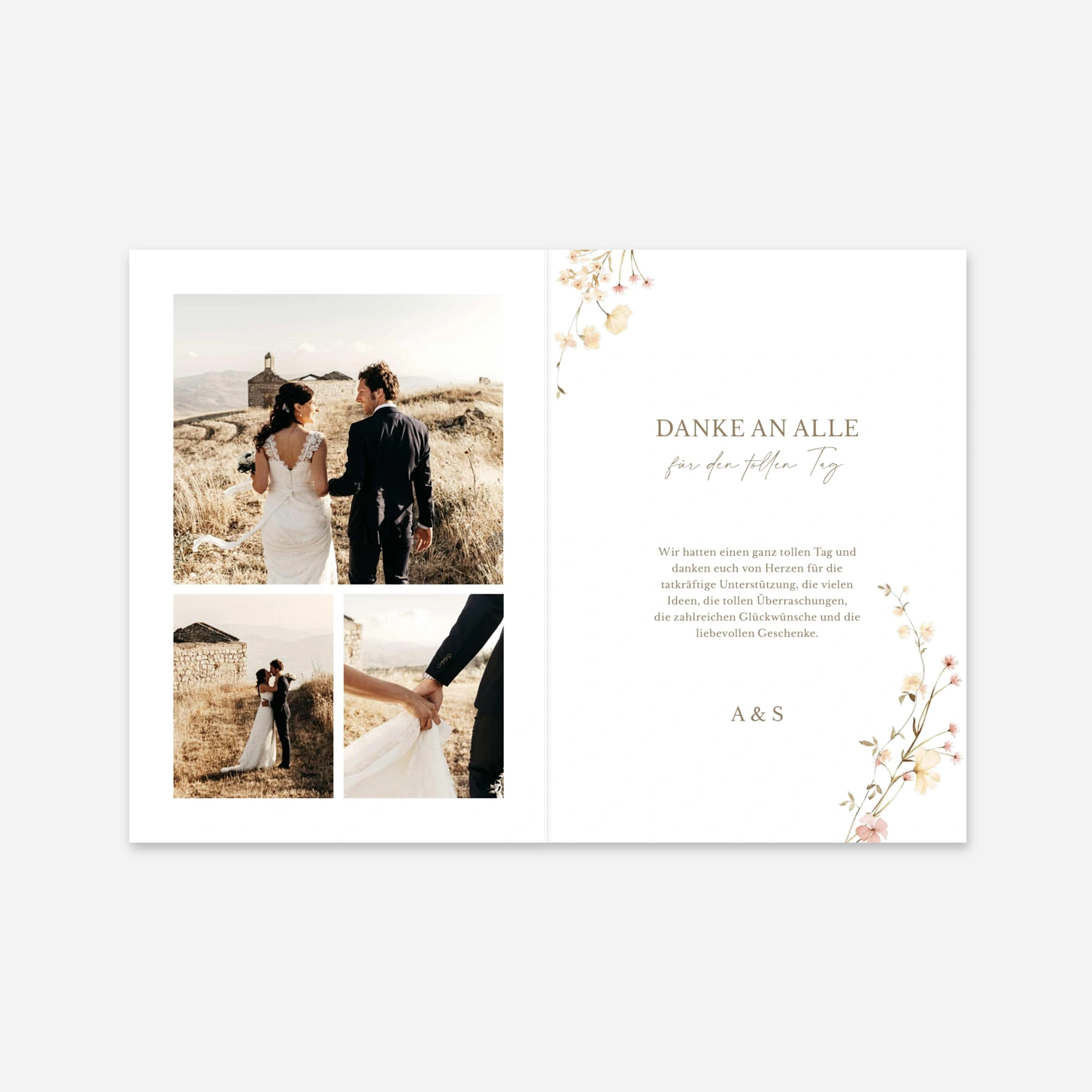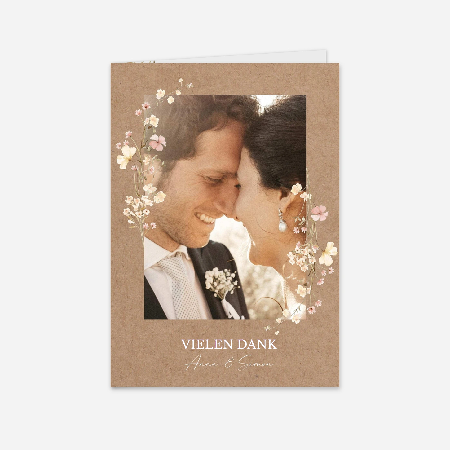 Verleihen Sie Ihrem Dank einen romantischen Ausdruck mit der Dankeskarte "Blütenmonogramm", die durch ihre zarten floralen Illustrationen und den natürlichen Charme besticht. Dieses Design rückt Ihr liebstes Hochzeitsfoto in den Mittelpunkt und schafft eine bleibende Erinnerung an Ihren besonderen Tag. Wir drucken Ihre Karten in unseren eigenen Ateliers in Deutschland und Frankreich auf hochwertigen Premium-Papieren, um eine erstklassige Qualität zu garantieren. Wenn Sie Ihre Dankeskarten zur Hochzeit online gestalten, sorgen unsere Experten für ein harmonisches Layout und ein perfektes Druckergebnis. Gestalten Sie Ihr Set jetzt online und bereiten Sie Ihren Gästen eine Freude.