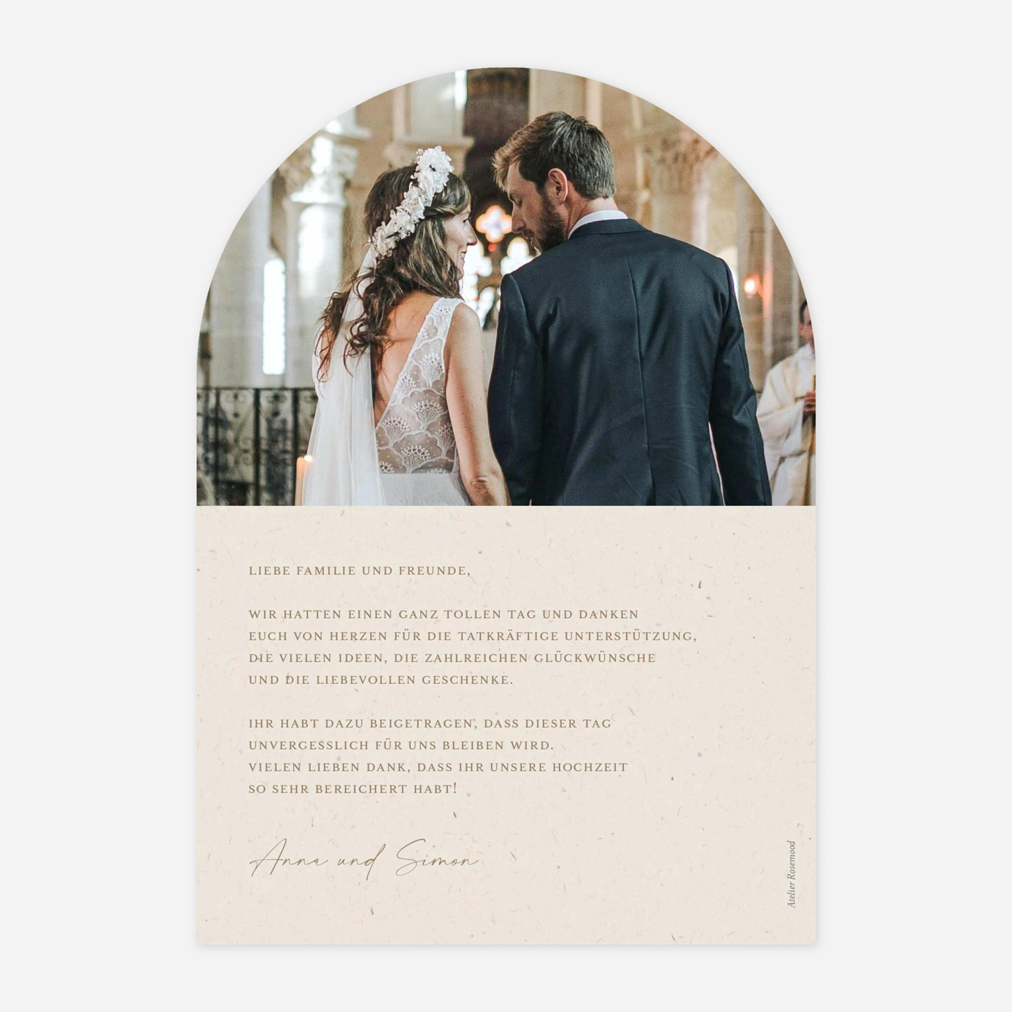 Sagen Sie Danke mit der Dankeskarte "Passepartout" – liebevoll gestaltet und mit Platz für Ihre schönsten Fotos wird sie zur bleibenden Erinnerung an einen einzigartigen Tag.