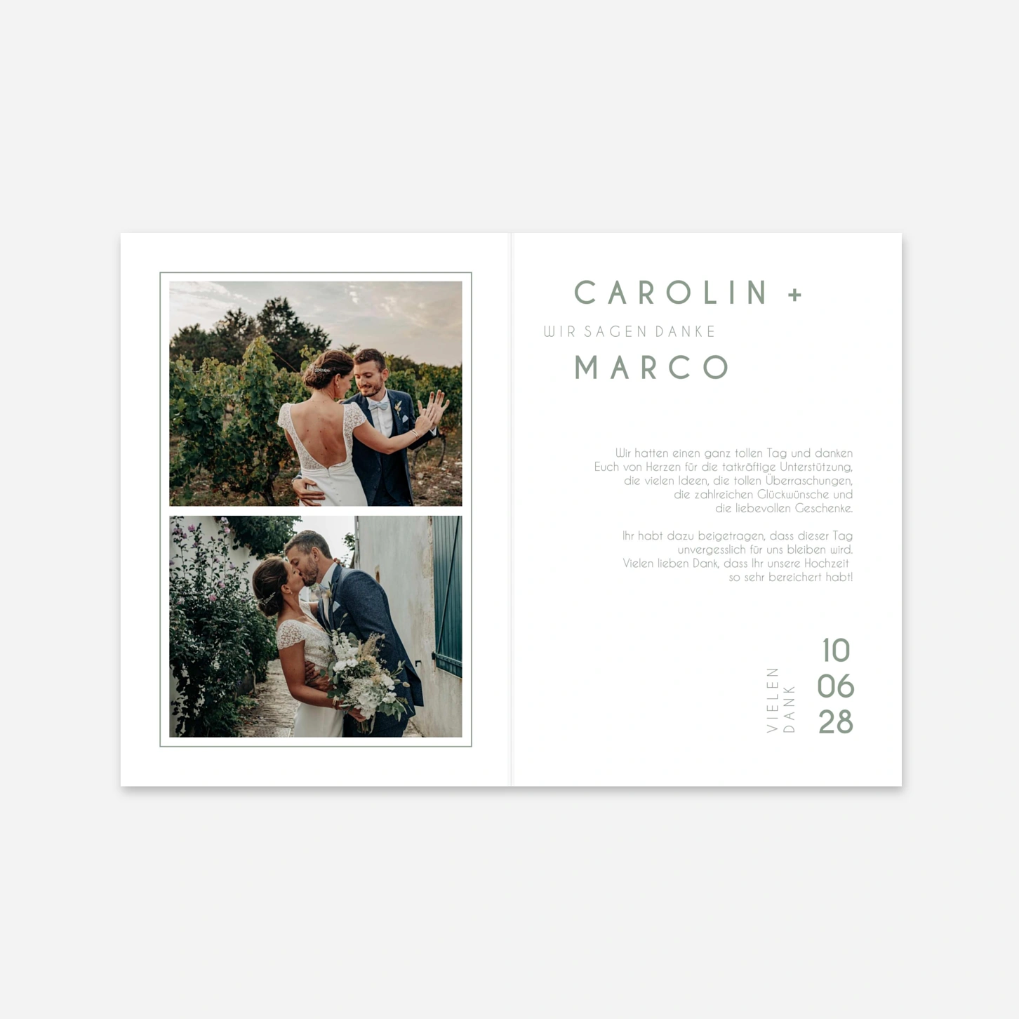 Sagen Sie Danke mit der Dankeskarte "Reine Liebe" – liebevoll gestaltet und mit Platz für Ihre schönsten Fotos wird sie zur bleibenden Erinnerung an einen einzigartigen Tag.