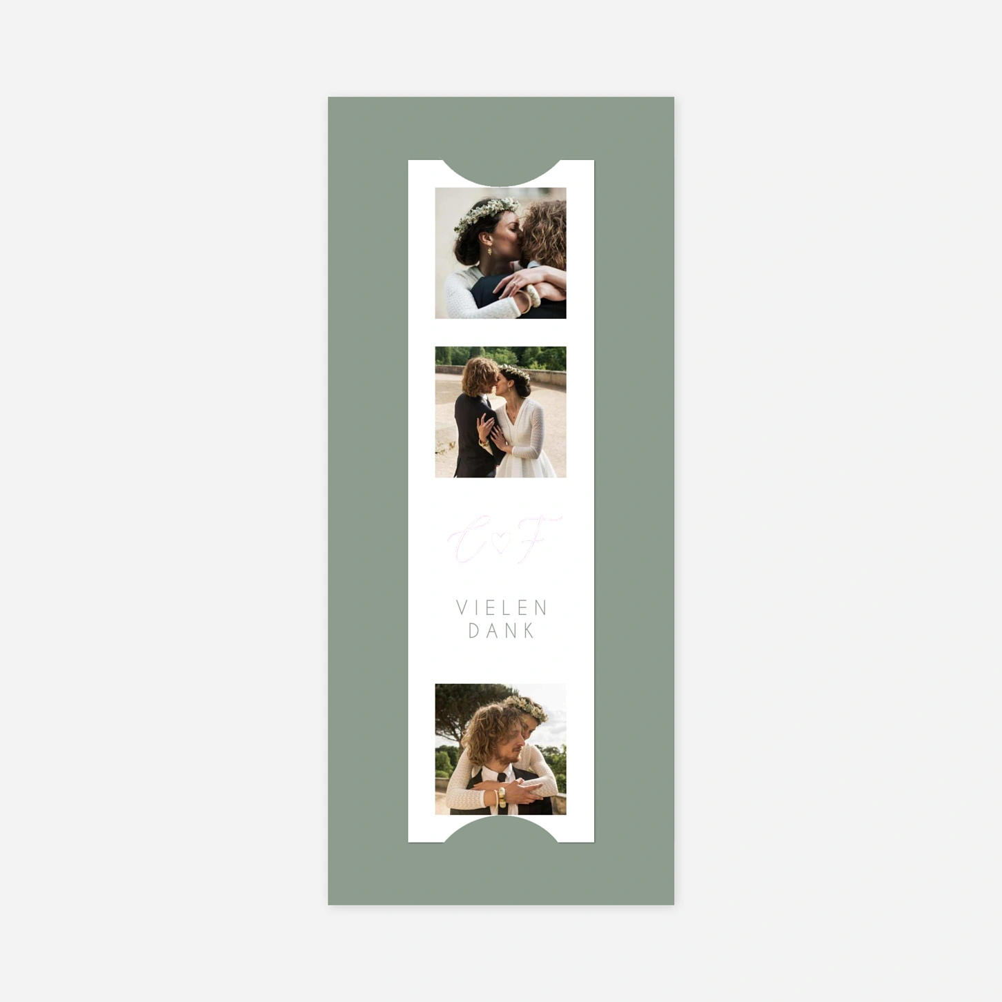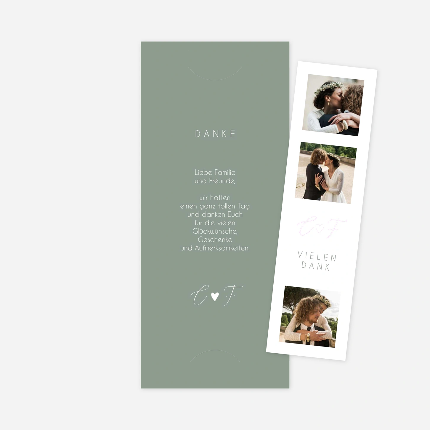 Die Dankeskarte zur Hochzeit "Stilvolles Herz" vereint zeitlose Eleganz mit einer romantischen Note. Die harmonische Kombination aus Fotos und Initialen macht sie zur idealen Wahl für Paare, die mit einer persönlichen Note Danke sagen möchten.