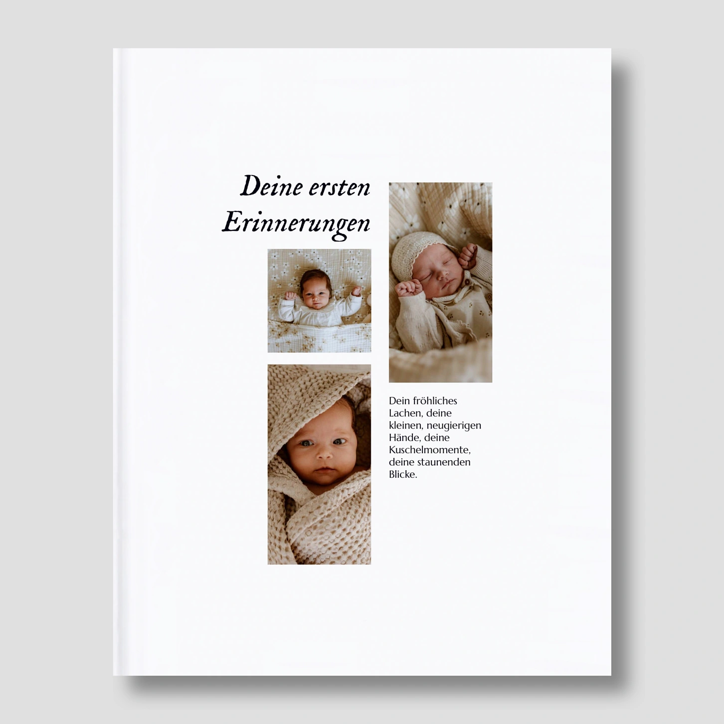 Wir machen es uns zur Aufgabe, ein unverwechselbares Fotobuch zu gestalten - Langlebigkeit, gründliche Verarbeitung und Details, die den Unterschied machen: Sorgfältig ausgewählte Papiersorten für eine optimale Haptik und Druckqualität, hochwertiger Digitaldruck, elegante Deckblätter in einem zarten Grau und farblich passendes Kapitalband, kartonierter und solider Hardcovereinband. Wir freuen uns nun, Sie beim Festhalten Ihrer schönsten Erinnerungen in Form eines langlebigen Fotobuches zu begleiten! Um Ihr Fotobuch so lange wie möglich in einem guten Zustand zu erhalten, vermeiden Sie es bitte, dieses geöffnet mit dem Buchrücken nach oben hinzulegen.