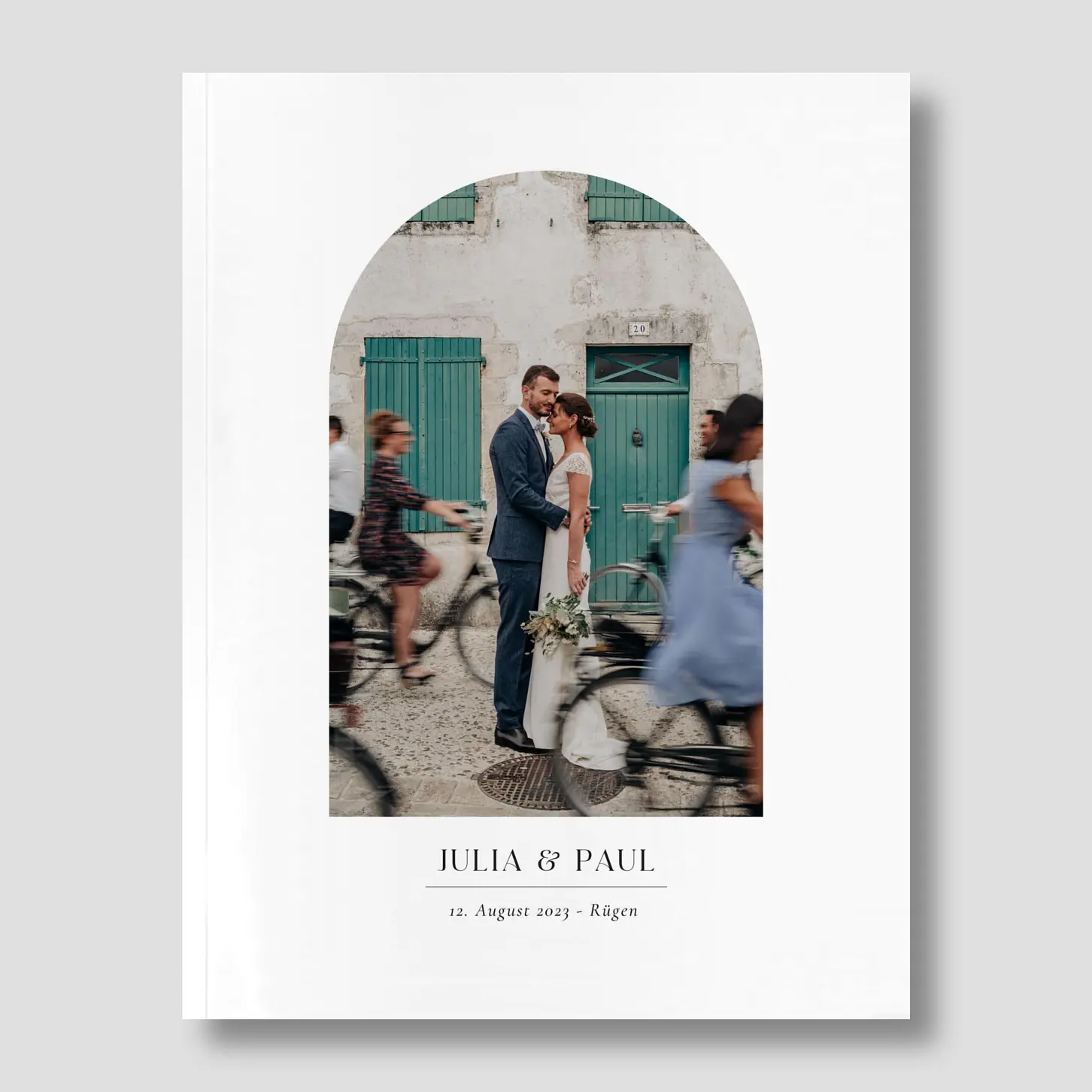 Halten Sie Ihren perfekten Tag mit dem modernen Fotobuch "Eleganter Bogen" fest und lassen Sie bei jedem Durchblättern Ihre Hochzeit Revue passieren.