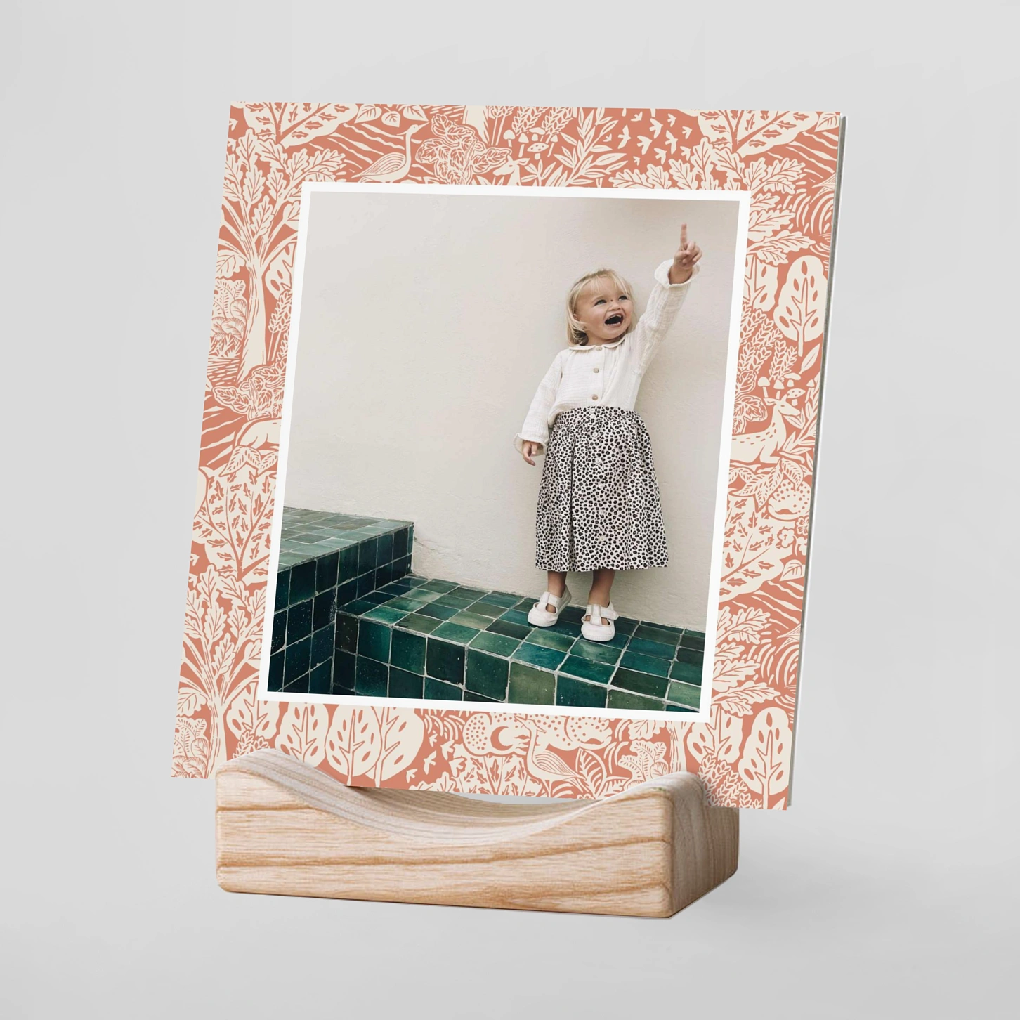 Mit seinem liebevoll gestalteten Waldmuster ist der Fotohalter "Kleine Wunder" ein idealer Begleiter für Kinderfotos oder andere Erinnerungen. Ob erste Schritte, wilde Tobereien oder verträumte Momente – hier bekommen die schönsten Erinnerungen einen zauberhaften Rahmen. Das natürliche Design aus Holz fügt sich harmonisch ins Kinderzimmer oder Familienbereich ein. Schnell wechselbar, immer besonders.