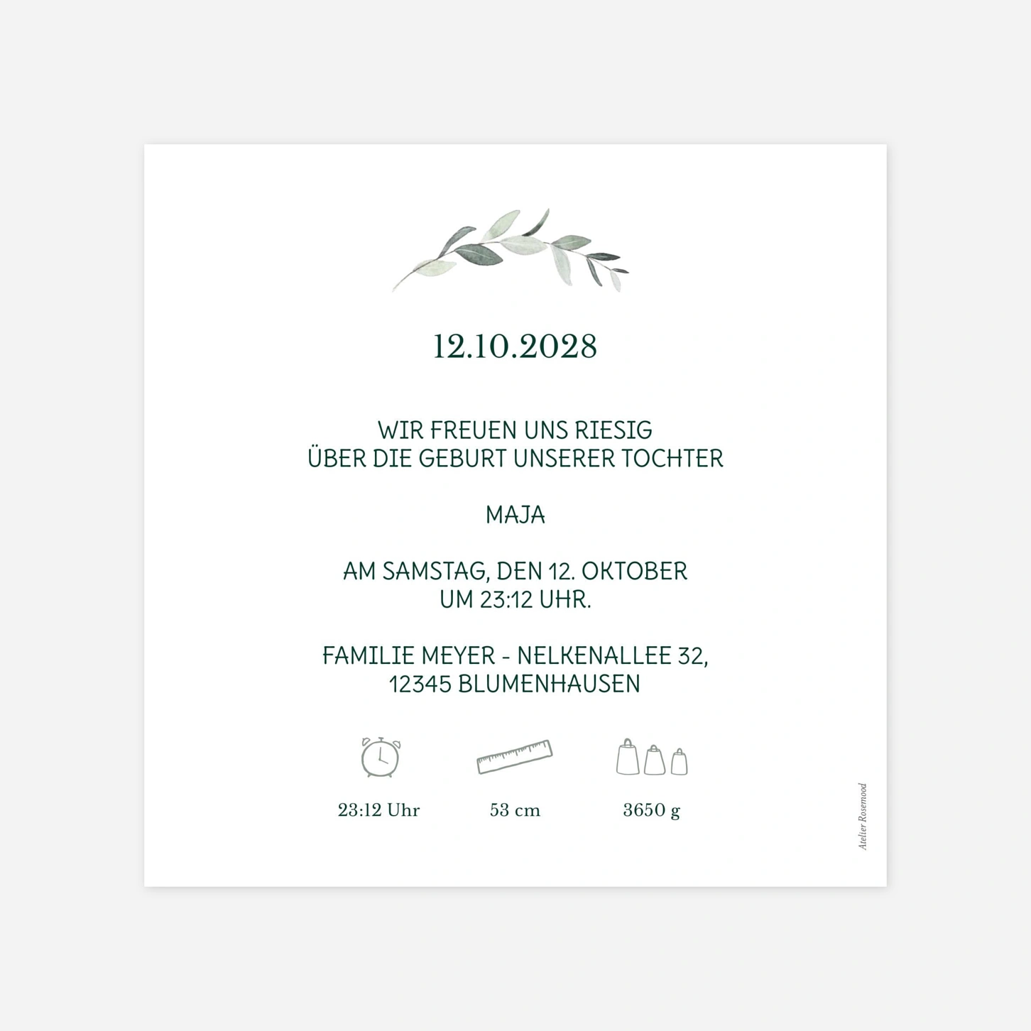 Die Geburtskarte „Blätterwiege“ heißt Ihr Baby auf besonders sanfte und natürliche Weise willkommen und rückt Ihr Familienfoto liebevoll in den Mittelpunkt. Zarte Illustrationen verleihen dieser Geburtskarte eine ruhige, zeitlose Ausstrahlung – ideal, um die ersten großen Gefühle stilvoll zu teilen. Gestalten Sie Ihre Geburtskarte online ganz nach Ihren Wünschen und freuen Sie sich bei Geburtskarten über unsere kostenlosen Musterkarten. Entworfen in unserem Atelier und in unseren eigenen Produktionsstätten in Deutschland und Frankreich gefertigt, entsteht so eine Ankündigung, die von Herzen kommt.
