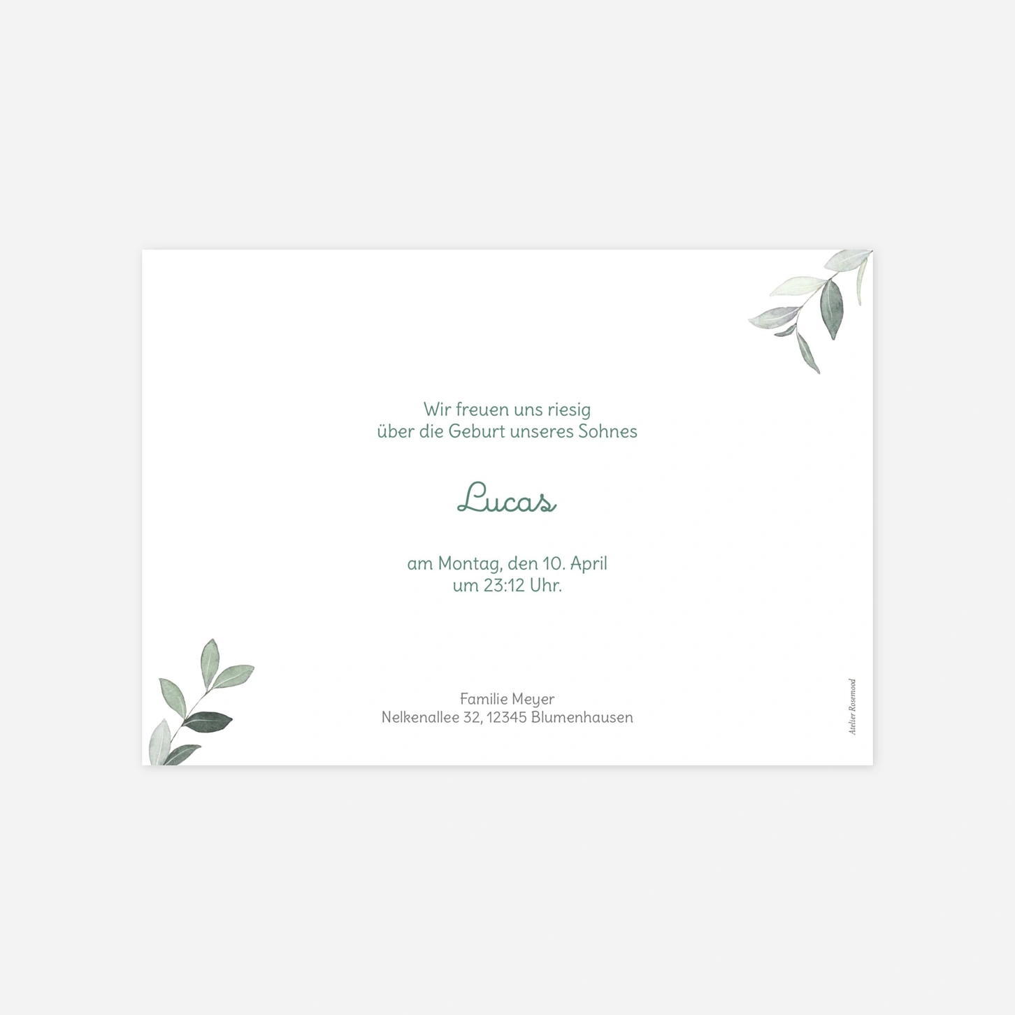 Die Geburtskarte "Blätterzwerg" vereint natürliche Leichtigkeit mit liebevollen Illustrationen und bietet den perfekten Rahmen für die schönsten ersten Fotos Ihres Babys. Persönliche Angaben wie Geburtsdatum, Größe und Gewicht werden harmonisch integriert und machen Ihre Babyankündigung besonders individuell. Gedruckt auf hochwertigem Papier in unseren eigenen Werkstätten in Deutschland und Frankreich entsteht ein Erinnerungsstück, das lange Freude bereitet. Bestellen Sie jetzt Ihr kostenloses Muster und gestalten Sie Ihre Geburtskarte online nach Ihren Vorstellungen.