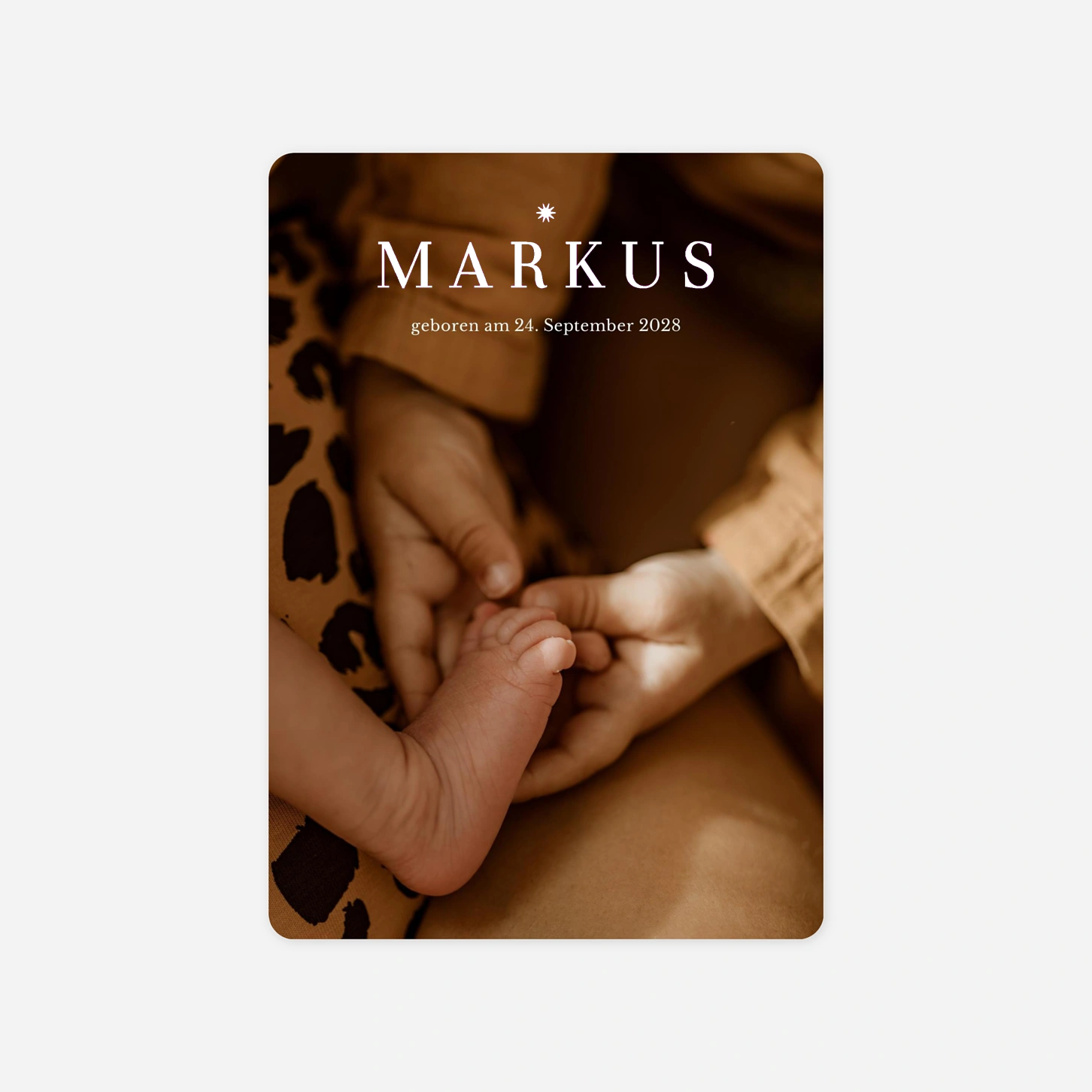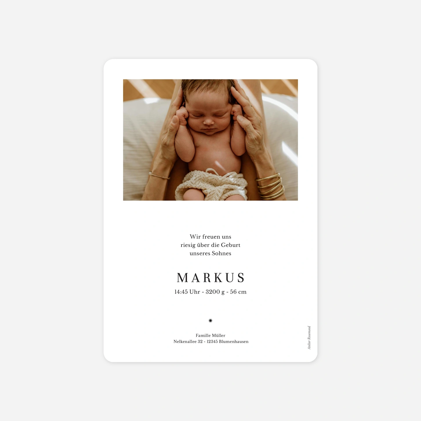 Ihr kleines Wunder hat das Licht der Welt erblickt – verkünden Sie diese frohe Botschaft mit der Geburtskarte Ein Stern ist geboren, die Ihr liebstes Foto Ihres Neugeborenen in den Mittelpunkt stellt.