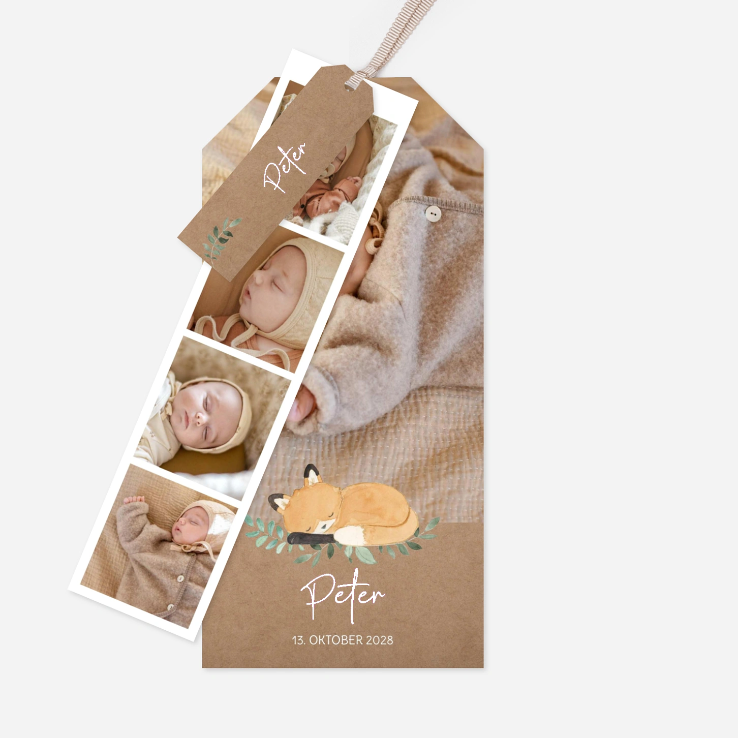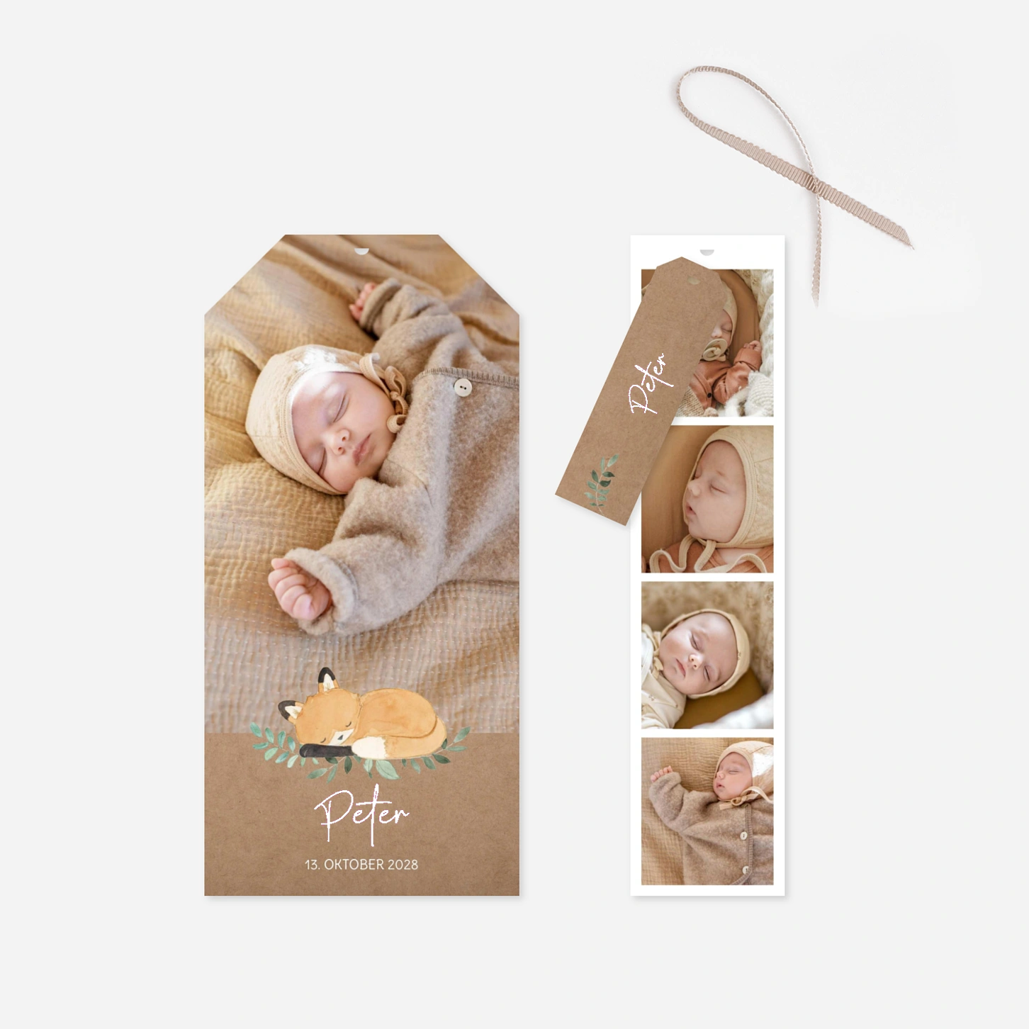 Die Geburtskarte „Füchschenliebe“ verbindet natürliche Bildwelten mit einer liebevollen Illustration und schafft so eine warme, geborgene Atmosphäre für die Ankündigung Ihres Babys. Das harmonische Zusammenspiel aus Fotoflächen und verspieltem Motiv macht diese Geburtskarte ideal, um Ihre Freude persönlich zu teilen und Ihre Geburtskarte gestalten zu können. Das Design wurde in unserem hauseigenen Atelier entworfen und mit großer Sorgfalt in unseren eigenen Produktionsstätten in Deutschland und Frankreich gefertigt. Für alle Geburtskarten können Sie zudem ein kostenloses Musterpaket bestellen, bevor Sie Ihre Geburtskarte drucken lassen.