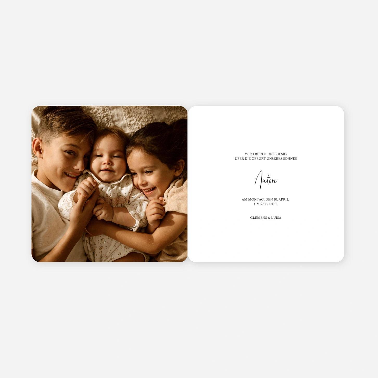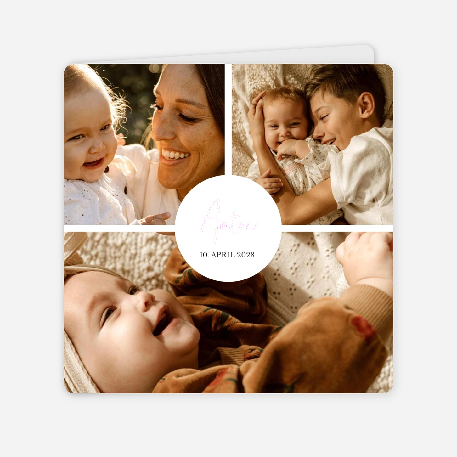Die Geburtskarte „Herzenscollage“ fängt die schönsten ersten Momente Ihres Babys mit liebevoll arrangierten Fotos ein. Das schlichte, natürliche Design lässt die Bilder ganz für sich sprechen und strahlt Wärme und Geborgenheit aus – perfekt, um Ihre Freude mit Familie und Freunden zu teilen. Gestalten Sie Ihre persönliche Geburtskarte online und verleihen Sie ihr mit Ihren Fotos und Texten eine ganz individuelle Note. Gedruckt wird jede Karte in unseren hauseigenen Werkstätten in Deutschland und Frankreich. Nutzen Sie auch unseren kostenlosen Musterservice, um sich von der Qualität zu überzeugen.