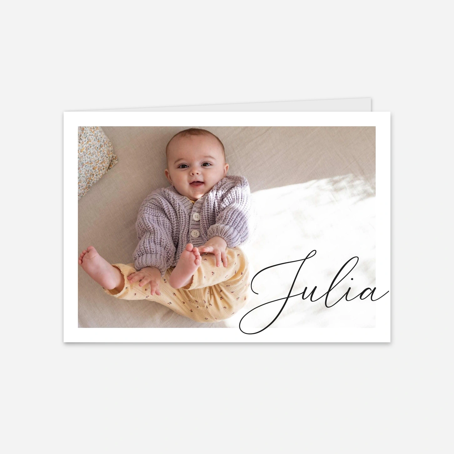 Die Geburtskarte "Traumreise" begeistert mit ihrer sanften Eleganz und viel Raum für persönliche Fotos Ihres Babys. Das klare Layout verbindet moderne Typografie mit warmem Design und macht die Ankündigung der Geburt zu einem ganz besonderen Moment. Dank unserer eigenen Werkstätten in Deutschland und Frankreich wird Ihre Karte mit größter Sorgfalt und Liebe zum Detail gefertigt. Bestellen Sie ein kostenloses Muster und gestalten Sie Ihre Geburtskarte ganz nach Ihren Wünschen online.