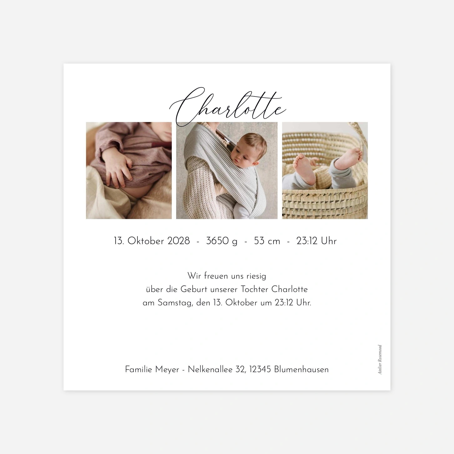 Die Geburtskarte "Unser Babyglück" bringt die zarten ersten Momente mit Ihrem Kind auf wunderschöne Weise zum Ausdruck. Das natürliche Design lenkt den Blick ganz auf Ihr Baby und unterstreicht die emotionale Botschaft dieser besonderen Ankündigung. Mit wenigen Handgriffen können Sie Ihre persönliche Geburtskarte gestalten und durch Fotos sowie individuelle Texte zu einem einzigartigen Erinnerungsstück machen. Unsere Karten werden in unseren eigenen Ateliers in Deutschland und Frankreich mit viel Sorgfalt gedruckt. Nutzen Sie auch die Möglichkeit, vorab ein kostenloses Muster zu bestellen.
