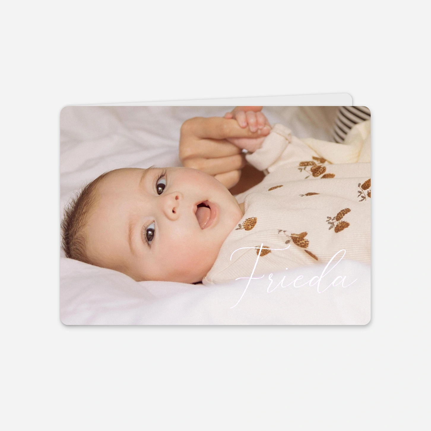 Diese Geburtskarte "Unser Kind" begeistert durch ihre schlichte Eleganz und legt den Fokus auf das Wesentliche: Ihr Baby. Das große Foto rückt Ihr kleines Wunder in den Mittelpunkt und lässt Familie und Freunde an diesem besonderen Moment teilhaben. Teilen Sie die Freude über die Geburt Ihres Babys mit einer Karte, die durch Schlichtheit und Schönheit besticht. Dieses Design ist ideal, um einen bleibenden Eindruck zu hinterlassen und den besonderen Anlass stilvoll zu verkünden.