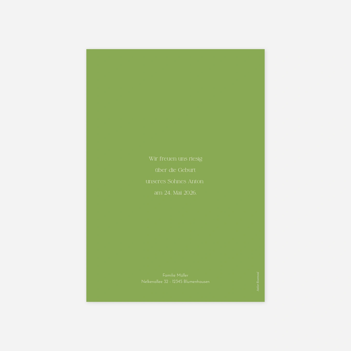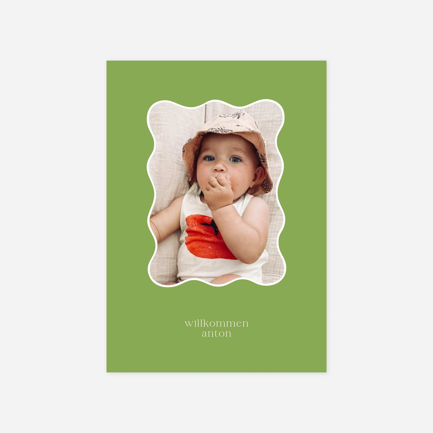 Die bezaubernde Geburtskarte "Welle der Liebe" setzt das erste Foto Ihres kleinen Schatzes durch einen verspielten, wellenförmigen Rahmen perfekt in Szene. Das minimalistische Design strahlt eine moderne Ruhe aus und lässt viel Raum für die wichtigste Botschaft Ihres Lebens. Damit Sie sich von der Qualität unserer Papiere überzeugen können, bieten wir Ihnen für Ihre Geburtskarten ein kostenloses Muster-Set an. Jedes Design wird mit viel Liebe in unseren eigenen Ateliers entworfen und in unseren Produktionsstätten in Deutschland oder Frankreich für Sie gefertigt. Gestalten Sie diese einzigartige Ankündigung jetzt ganz nach Ihren Wünschen direkt online.