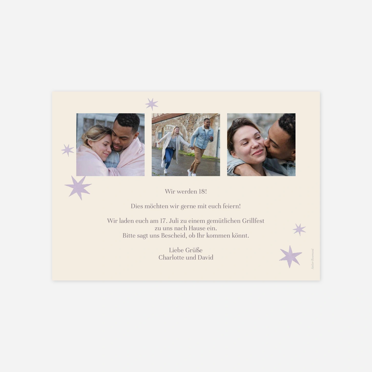 Die Einladung zum Geburtstag "Birthday Glow" versprüht mit ihrem lebendigen Sternen-Design und der modernen Typografie eine mitreißende Partystimmung. Dieses Modell rückt Ihr liebstes Foto in das Zentrum der Aufmerksamkeit und lädt Ihre Freunde und Familie stilvoll dazu ein, gemeinsam mit Ihnen das neue Lebensjahr zu feiern. Da uns Ihre besonderen Momente am Herzen liegen, fertigen wir jede Karte mit höchster Präzision in unseren hauseigenen Ateliers in Deutschland und Frankreich. Vertrauen Sie auf unsere Expertise und lassen Sie bei uns Ihre individuelle Einladung zum Geburtstag drucken, die durch erstklassige Qualität und liebevolle Details überzeugt. Gestalten Sie Ihre persönliche Geburtstagspost jetzt ganz einfach online in unserem Editor.