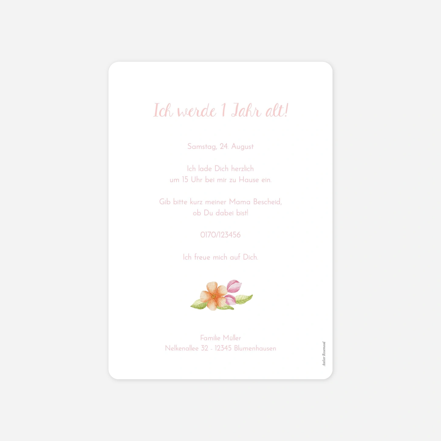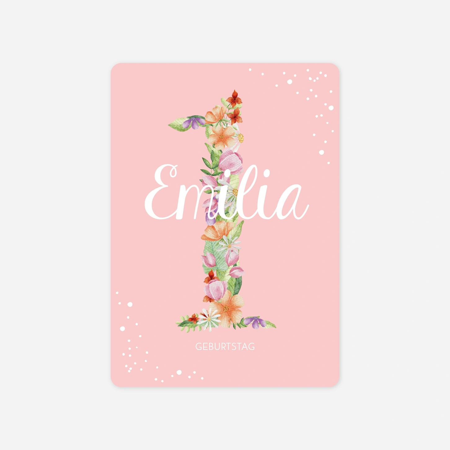 Die Kindergeburtstagseinladung "Blütenglück" verzaubert durch ihre verspielte, florale Gestaltung und rückt den ersten großen Meilenstein Ihres Kindes liebevoll in den Fokus. Das harmonische Design verbindet zarte Blüten-Illustrationen mit einer modernen Typografie und schafft so einen herzlichen Rahmen für diesen besonderen Ehrentag. In unseren eigenen Ateliers entworfen, lässt sich diese Einladung zum Kindergeburtstag ganz einfach online nach Ihren Wünschen personalisieren. Für die Gestaltung stehen Ihnen unsere hochwertigen Papiersorten und der präzise Druck aus unserer hauseigenen Produktion zur Verfügung. Entdecken Sie jetzt, wie leicht Sie diese charmante Geburtstagskarte selbst gestalten können.