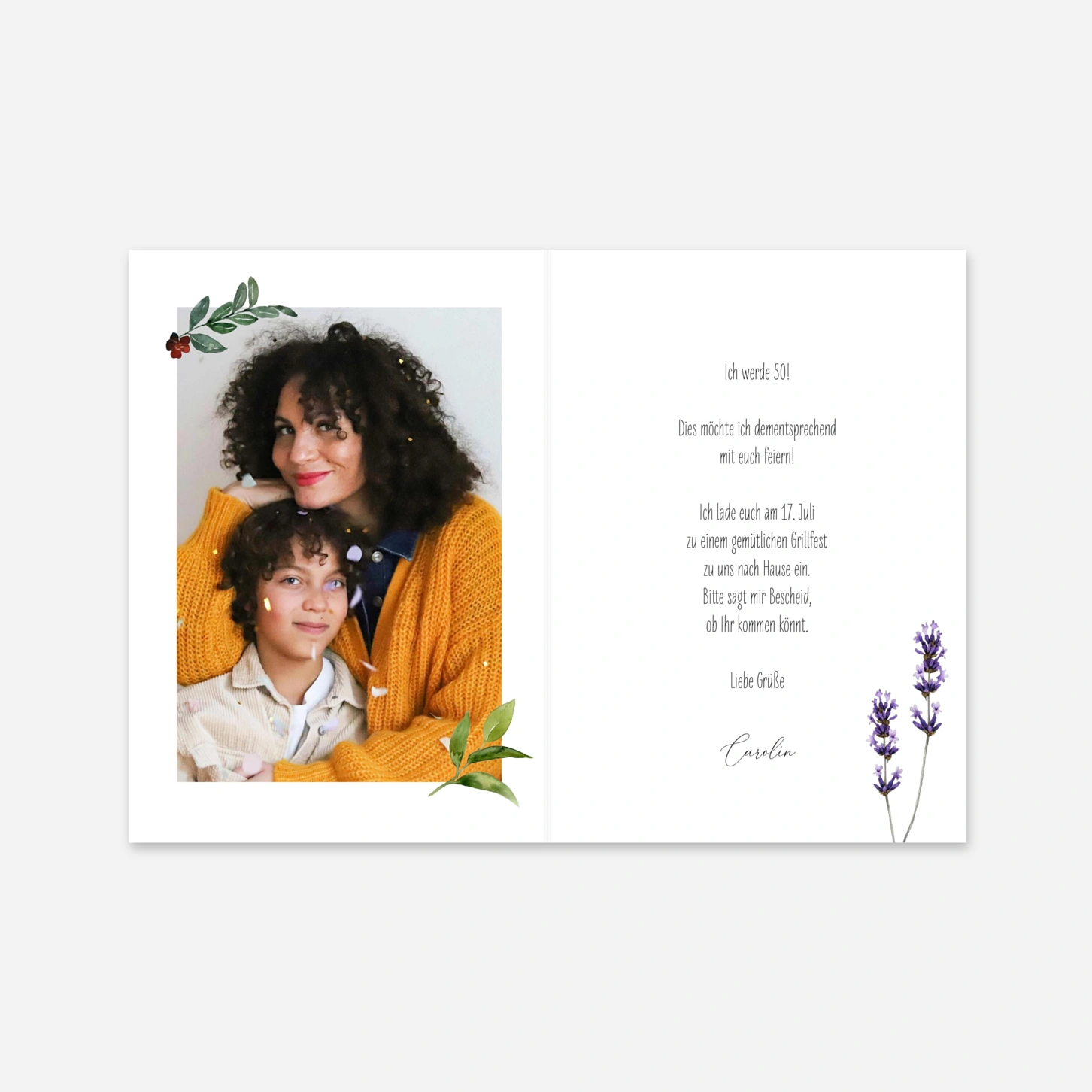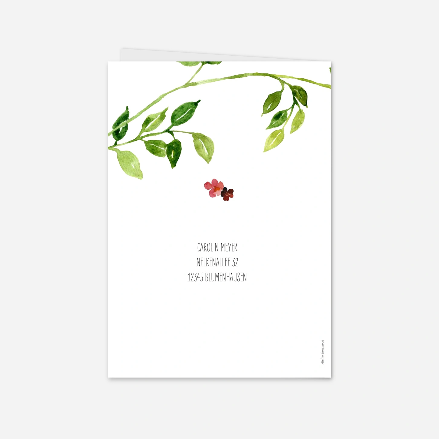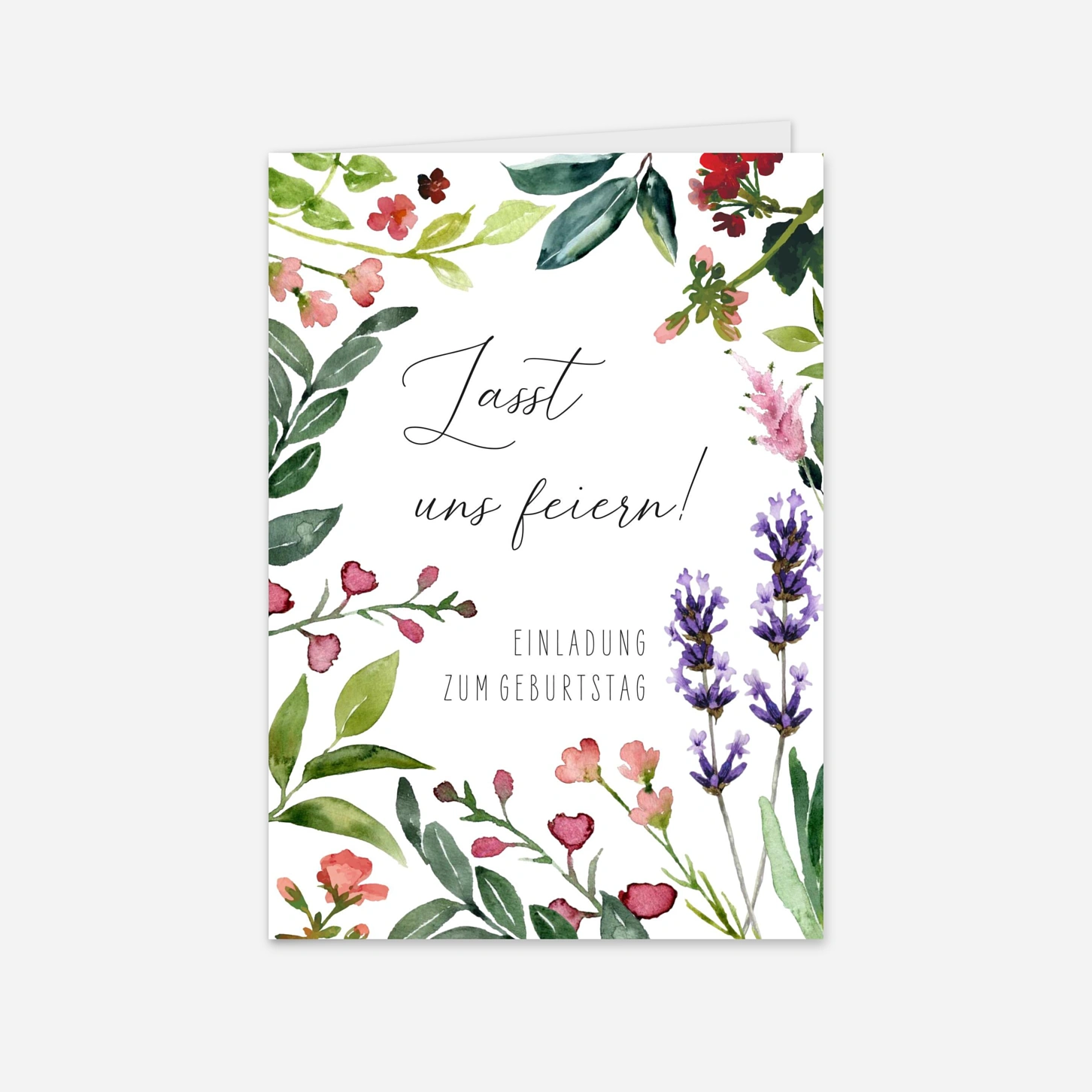 Die Geburtstagskarte "Blumenglück" verzaubert durch ihre verspielten Aquarell-Illustrationen, die eine sommerliche Leichtigkeit auf Ihren Geburtstagstisch zaubern. Mit ihren zarten Blüten und Ranken rahmt sie Ihre Einladung zum Geburtstag auf besonders charmante Weise ein und weckt bei Ihren Gästen sofort die Vorfreude auf ein gemeinsames Fest. Unsere internen Designer haben dieses florale Motiv mit viel Liebe zum Detail entworfen, damit Sie Ihre Einladungskarten ganz persönlich gestalten können. In unserer hauseigenen Manufaktur sorgen wir mit höchster Präzision dafür, dass Ihr Design auf hochwertigem Papier perfekt zur Geltung kommt. Gestalten Sie Ihr Set jetzt online und bereiten Sie Ihren Liebsten eine blumige Überraschung.
