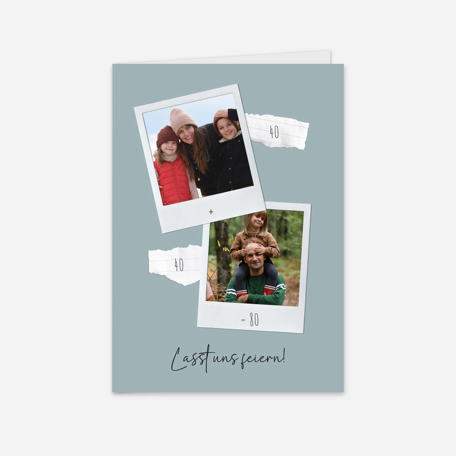 Die Geburtstagskarte "Doppelte Freude" besticht durch ihr originelles Collagen-Design im Polaroid-Stil und ist die ideale Wahl für einen gemeinsamen runden Geburtstag. Mit dieser Einladung zum Geburtstag setzen Sie Ihre liebsten Schnappschüsse spielerisch in Szene und verleihen Ihrer Post eine ganz persönliche, herzliche Note. Da uns die Qualität Ihrer besonderen Momente am Herzen liegt, fertigen wir jede Karte mit höchster Präzision in unseren hauseigenen Ateliers für Sie an. Gestalten Sie Ihr individuelles Kartenset jetzt ganz einfach online und lassen Sie sich von unseren hochwertigen Papieren begeistern.