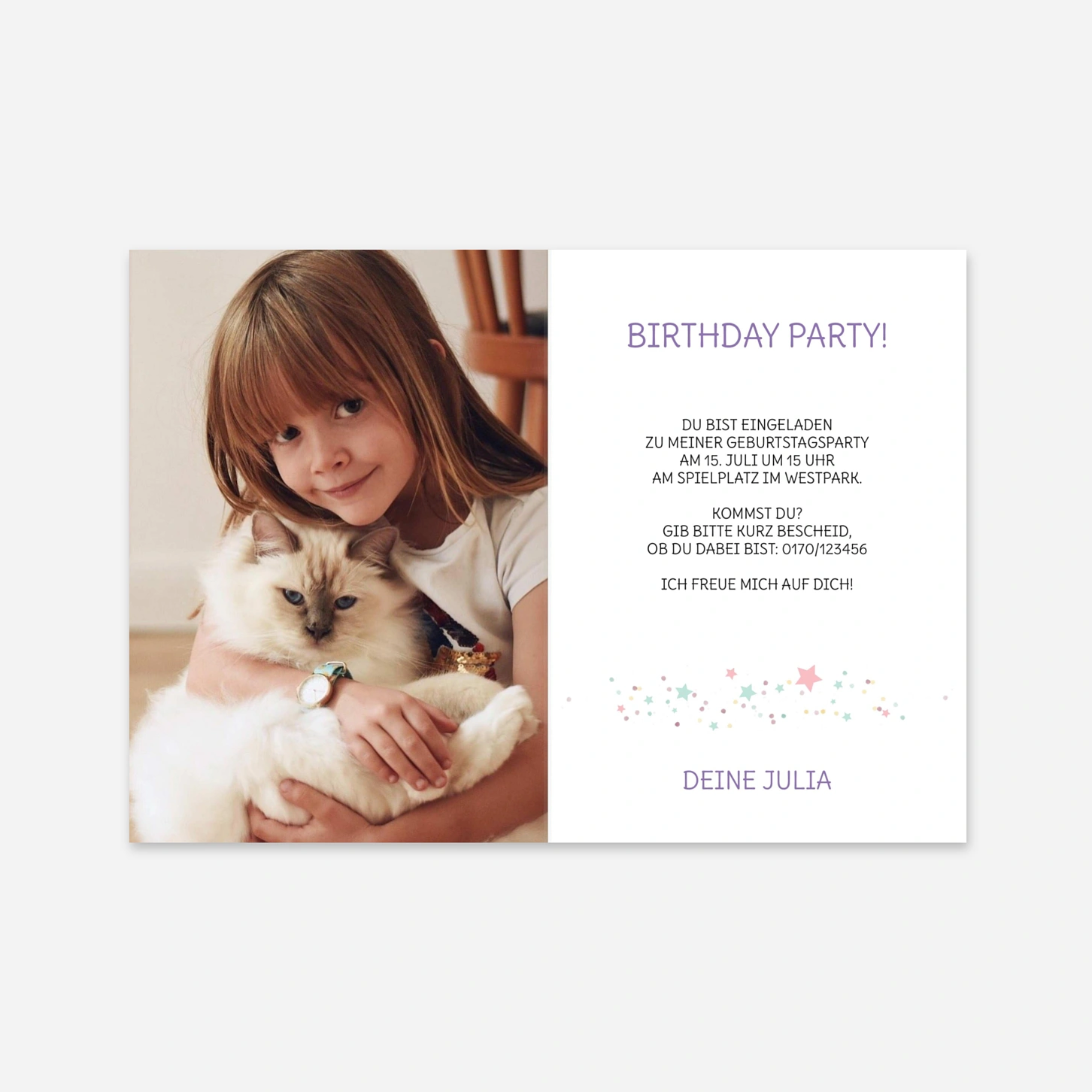 Die bezaubernde Geburtstagseinladung "Einhornfunkeln" entführt kleine und große Gäste in eine magische Welt voller Fantasie. Mit ihrem verspielten Design und dem Platz für ein persönliches Foto ist diese Karte die perfekte Wahl, um die Vorfreude auf einen unvergesslichen Kindergeburtstag zu wecken. Gestalten Sie Ihre Einladungskarten ganz einfach online und verlassen Sie sich auf unsere präzise Druckqualität aus eigenen Ateliers. Da uns Ihre besonderen Momente am Herzen liegen, wird jedes Design von unseren Grafikern liebevoll geprüft. Lassen Sie sich von diesem märchenhaften Motiv inspirieren und bereiten Sie Ihrem Kind eine strahlende Überraschung.