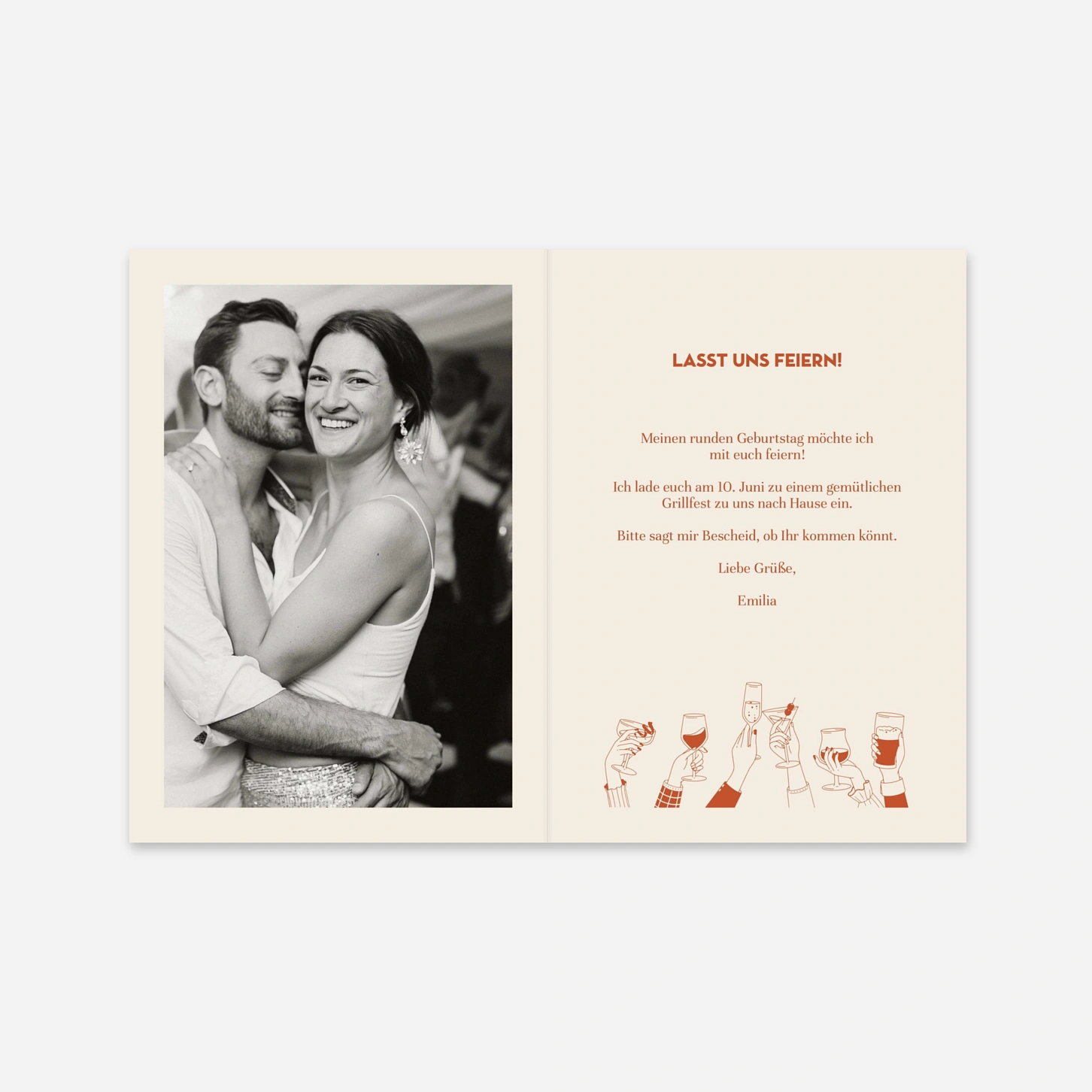 Laden Sie Ihre Liebsten mit der Geburtstagseinladung "Feierfreude" zu einem unvergesslichen Fest ein, das Lebenslust und Geselligkeit perfekt vereint. Die verspielten Illustrationen sorgen sofort für gute Laune und stimmen Ihre Gäste wunderbar auf den besonderen Anlass ein. Bei Rosemood gestalten wir unsere Designs mit viel Liebe in unseren eigenen Ateliers, um Ihre wertvollsten Momente stilvoll festzuhalten. Vertrauen Sie auf unsere präzise Druckqualität, mit der Sie Ihre individuelle Geburtstagseinladung online gestalten und direkt zu sich nach Hause liefern lassen können. Entdecken Sie jetzt die Freude am Personalisieren und kreieren Sie ein Einzelstück, das Ihre Vorfreude teilt.