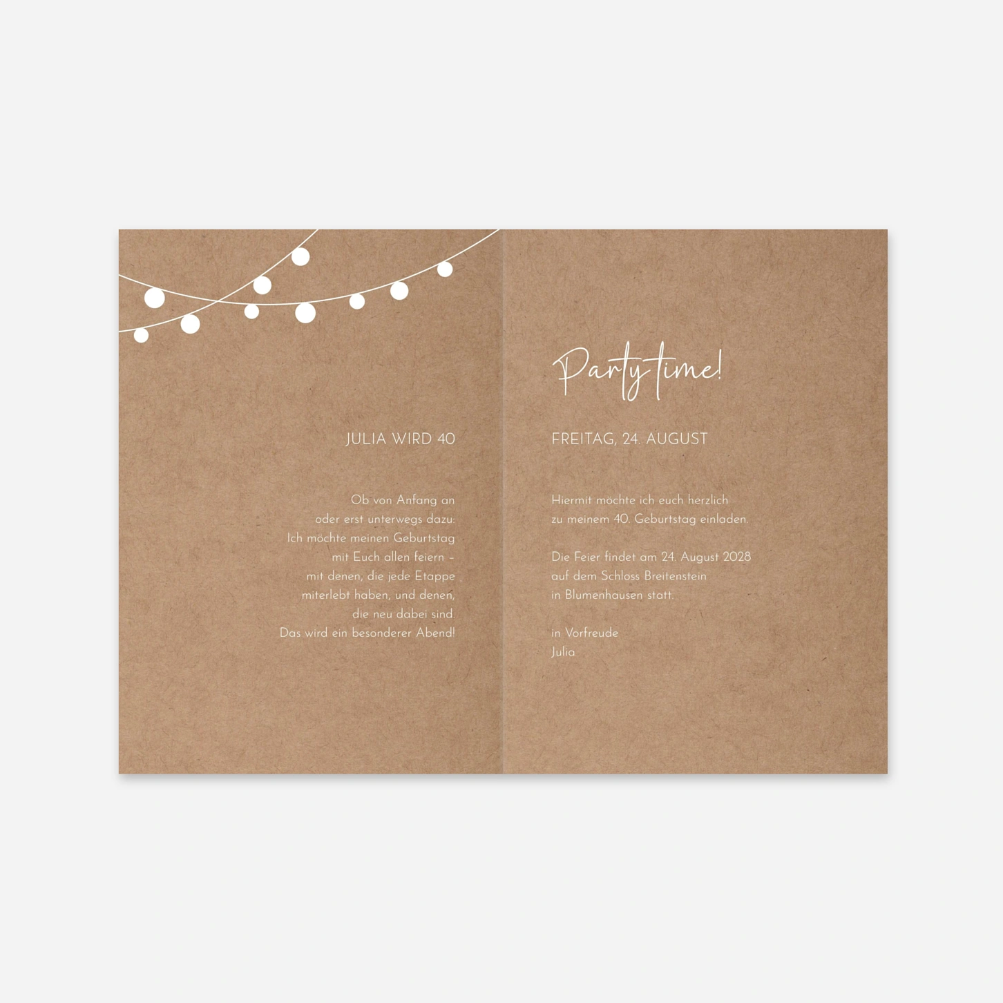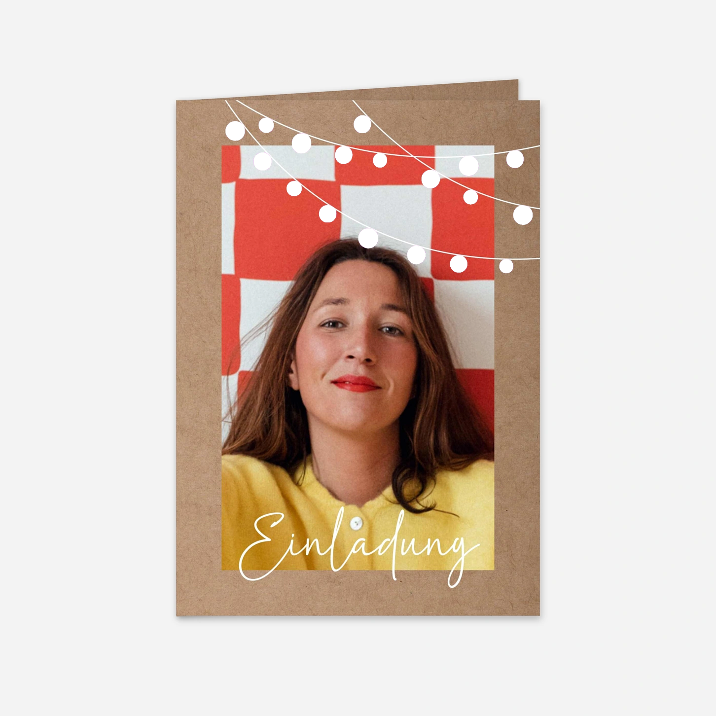 Laden Sie Ihre Liebsten mit der Einladung Geburtstag "Feierglanz" zu einem unvergesslichen Fest ein, das durch moderne Lichtakzente und eine persönliche Note besticht. Das Design setzt Ihr liebstes Porträtfoto unter einer illustrierten Lichterkette perfekt in Szene und versprüht sofort eine festliche und herzliche Atmosphäre. In unseren hauseigenen Ateliers entworfen, garantieren wir Ihnen eine hochwertige Qualität, damit Sie Ihre Einladungskarten mit Stolz verschicken können. Profitieren Sie von unserer präzisen Druckkunst und lassen Sie Ihre individuellen Karten in unserer eigenen Produktion in Deutschland oder Frankreich fertigen. Gestalten Sie Ihre Einladung jetzt online und freuen Sie sich auf strahlende Gesichter bei Ihren Gästen.