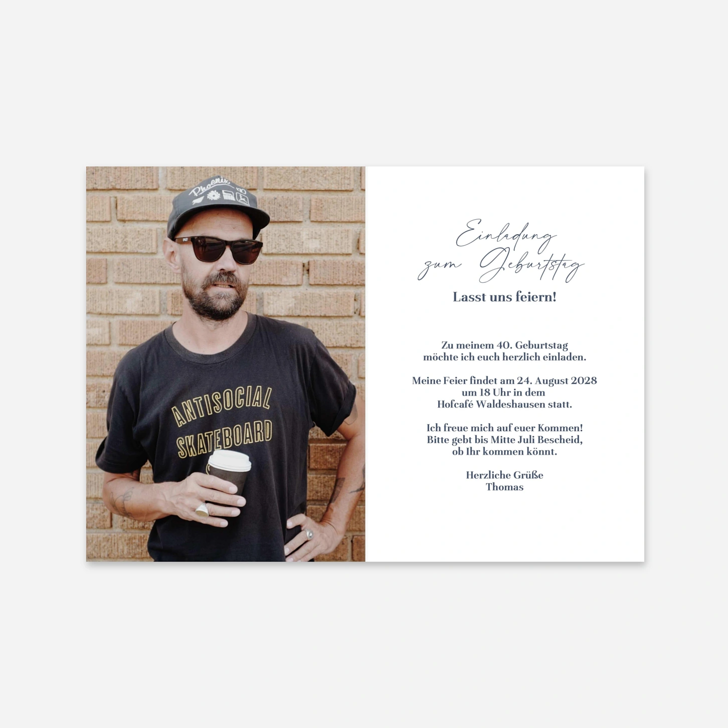 Die Geburtstagseinladung "Funkelndes Jahr" besticht durch ihr minimalistisches und dennoch ausdrucksstarkes Design, das Ihr Geburtsjahr stilvoll in den Mittelpunkt rückt. Diese moderne Karte wurde von unseren hauseigenen Designern entworfen, um Ihren runden Geburtstag mit einer Prise Vintage-Charme und schlichter Eleganz anzukündigen. Wenn Sie bei uns Ihre Einladung zum Geburtstag gestalten, profitieren Sie von unserer präzisen Druckqualität und den exklusiven Papieren aus unseren eigenen Ateliers. Sorgen Sie für Vorfreude bei Ihren Gästen und lassen Sie eine hochwertige Einladung zur Geburtstagsparty drucken, die genau zu Ihrem persönlichen Stil passt. Gestalten Sie Ihr Set jetzt online.