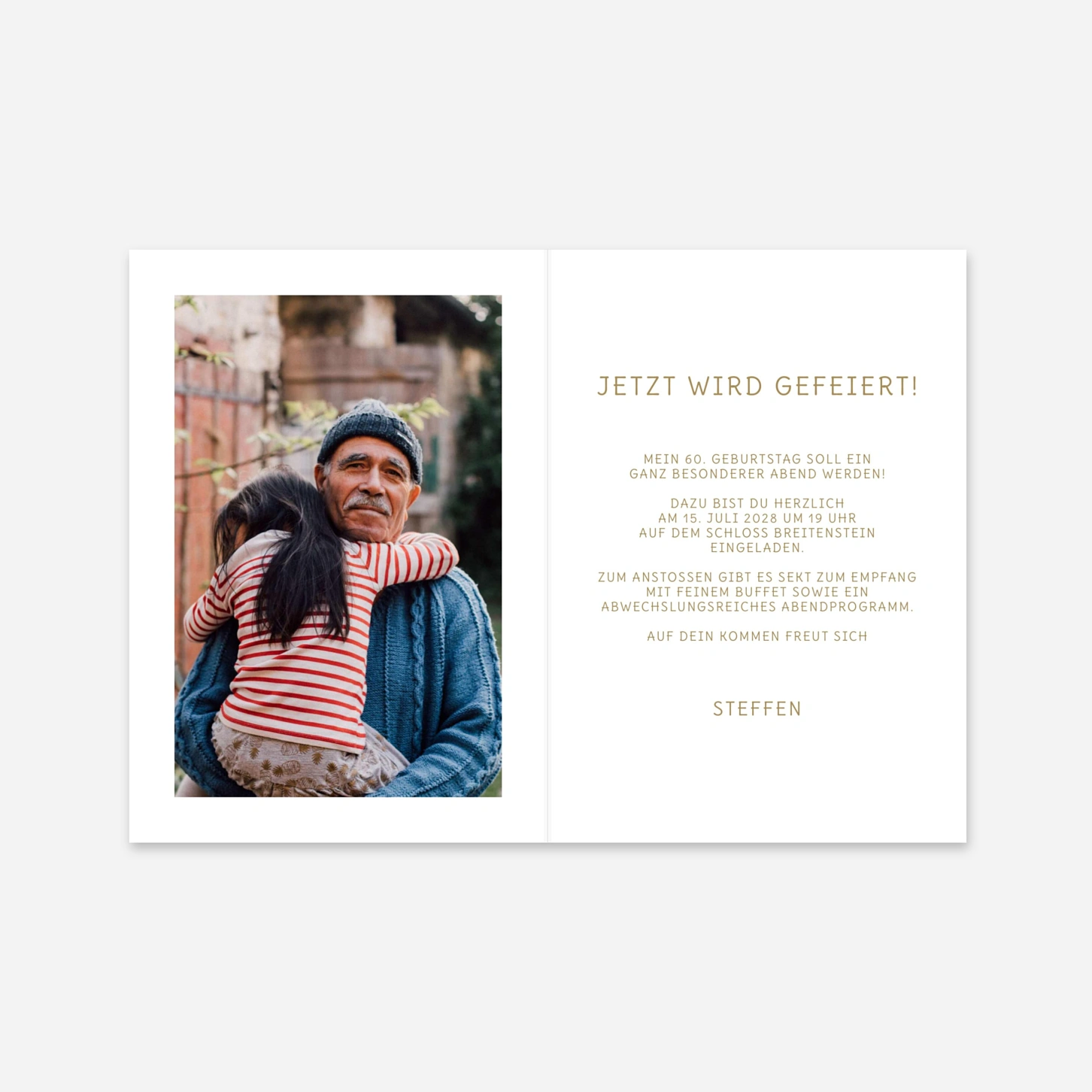 Die Geburtstagseinladung "Golden Night" überzeugt durch ein humorvolles Design, das mit feinen Illustrationen und einer Prise Leichtigkeit zu Ihrem besonderen Ehrentag einlädt. Das verspielte Motiv der verschiedenen Gläser macht direkt Lust auf eine gemeinsame Feier und lässt sich wunderbar mit Ihren persönlichen Details und einem eigenen Foto ergänzen. Alle unsere Karten werden mit größter Sorgfalt in unseren hauseigenen Ateliers in Deutschland und Frankreich für Sie gefertigt. Vertrauen Sie auf unsere langjährige Expertise und erstklassige Druckqualität, um Ihre Einladung zum Geburtstag online zu gestalten. Entdecken Sie jetzt die Möglichkeiten zur Personalisierung und bereiten Sie Ihren Gästen eine stilvolle Vorfreude.