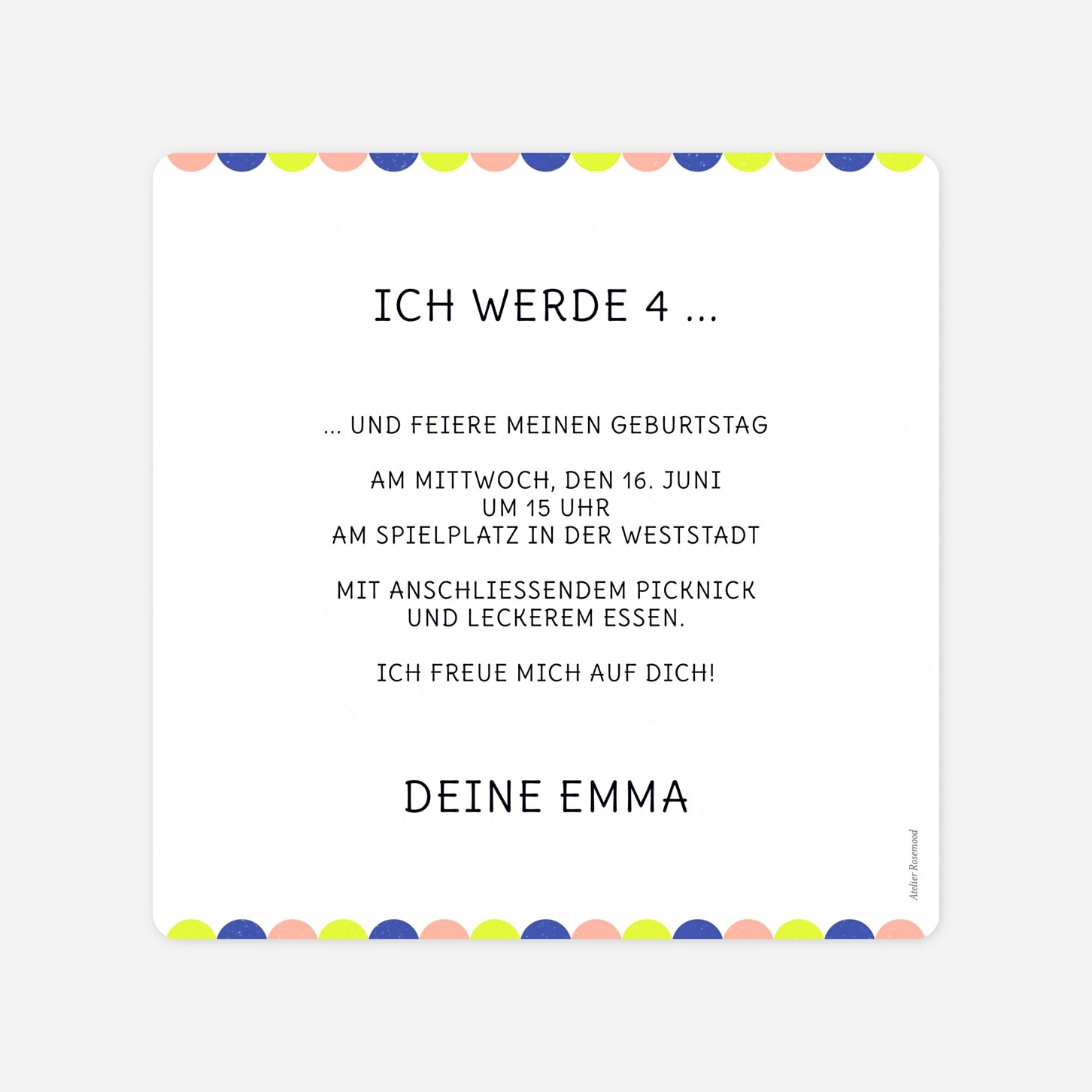 Bringen Sie Kinderaugen zum Strahlen mit der Einladung zum Kindergeburtstag "Tierparade", die durch ihre liebevollen Illustrationen kleiner Waldbewohner verzückt. Das verspielte Design schafft eine herzliche Atmosphäre und bietet den perfekten Rahmen, um Ihre kleinen Gäste zu einer unvergesslichen Feier einzuladen. Wir drucken Ihre Karten mit größter Präzision in unseren eigenen Ateliers in Deutschland und Frankreich, um eine exzellente Qualität auf unseren hochwertigen Papieren sicherzustellen. Vertrauen Sie auf unsere Expertise und Leidenschaft für schönes Design, wenn Sie Ihre individuelle Geburtstagseinladung gestalten. Möchten Sie direkt loslegen und Ihre persönliche Karte online erstellen?