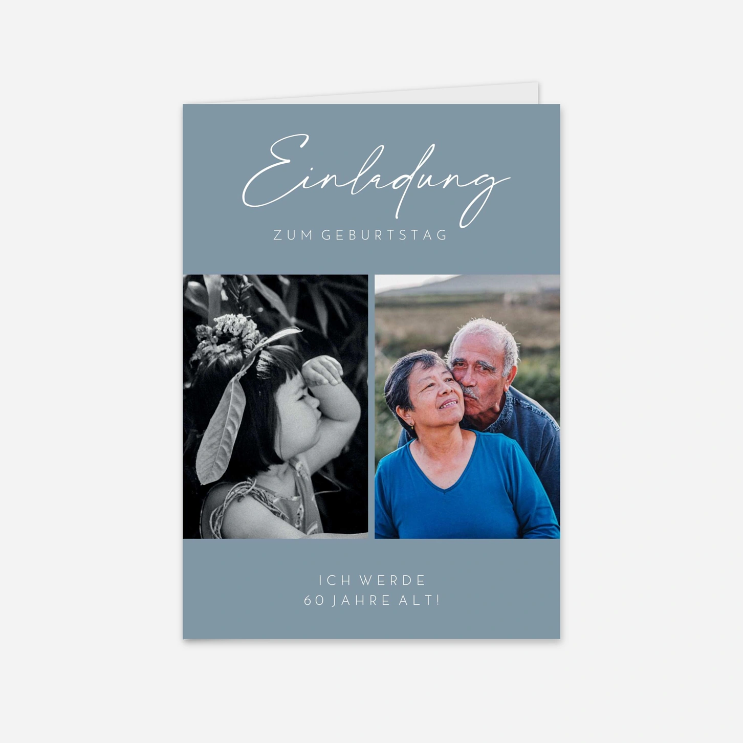 Die Einladung zum Geburtstag "Zeitlose Feier" besticht durch ein elegantes Design, das Ihre schönsten Erinnerungen aus verschiedenen Lebensphasen stilvoll gegenüberstellt. Diese besondere Karte bietet den perfekten Rahmen, um Ihre persönliche Geschichte zu erzählen und Ihre Gäste voller Vorfreude auf Ihr Jubiläum einzustimmen. Unsere erfahrenen Grafiker gestalten jedes Layout in unseren hauseigenen Ateliers mit größter Sorgfalt für Sie. Vertrauen Sie auf unsere präzise Druckqualität und hochwertige Papiere, um Ihre Einladung zum Geburtstag selbst zu gestalten. Erstellen Sie jetzt online Ihr ganz persönliches Erinnerungsstück für diesen besonderen Meilenstein.