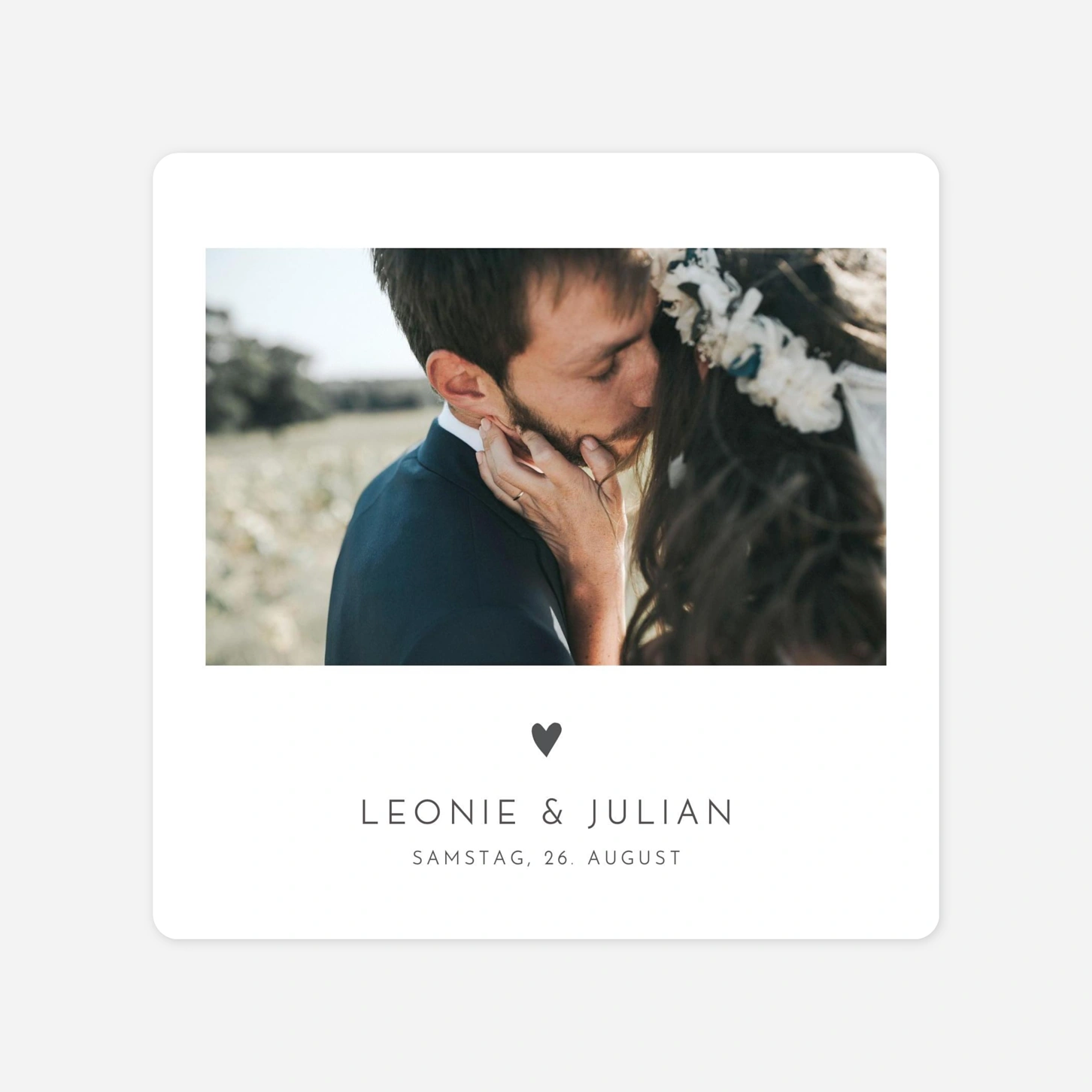 Mit der Hochzeitseinladung Elegant Herz schicken Sie Ihren Freunden und Verwandten ein ganz besonderes Papeterie-Stück. Nicht nur ist Ihr ganz individuelles Foto das Herzstück der Hochzeitseinladung, sondern wird Ihr Bild auch noch von einem funkelnden Herzen geschmückt.