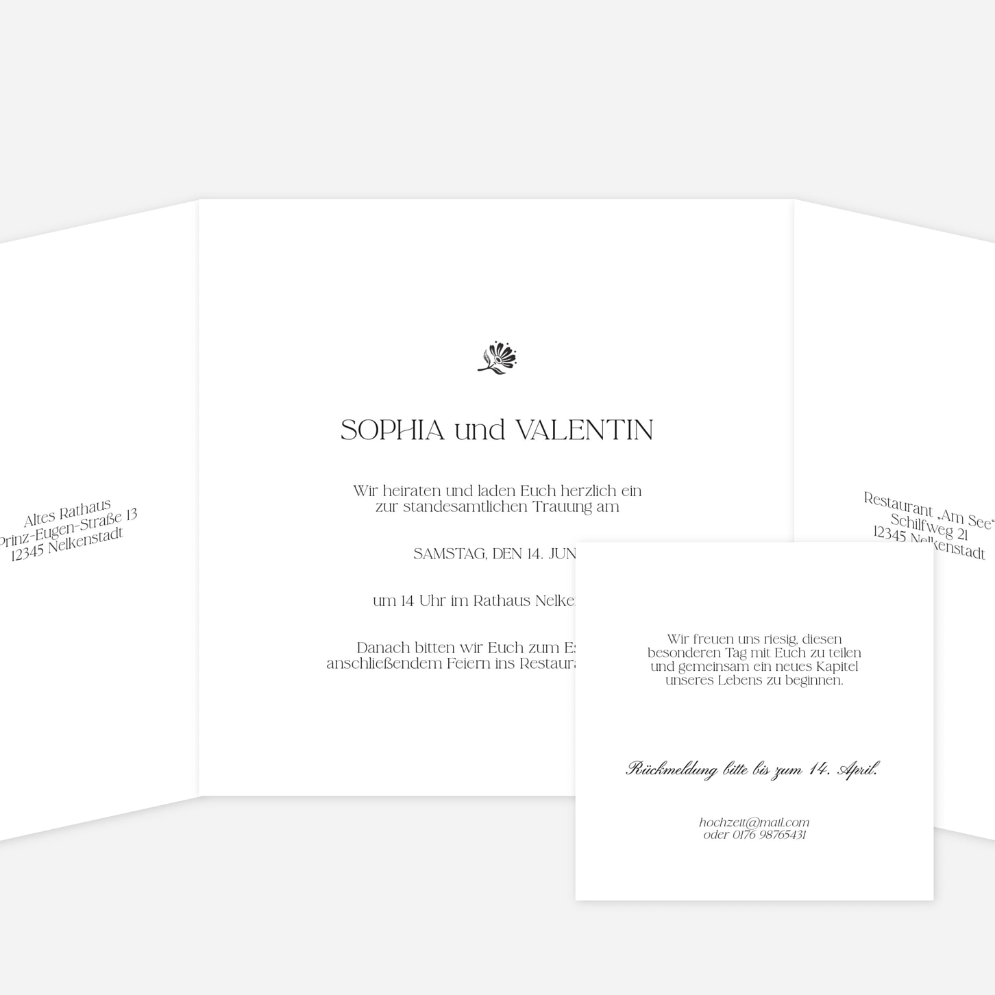 Die Hochzeitseinladung „Fleur minimale“ verbindet moderne Schlichtheit mit klassischer Eleganz durch ein reduziertes Design und eine klare Ästhetik. Erhältlich in drei Farbvarianten: Beige, Grün und Dunkelblau. Besonders hervor sticht die zarte florale Illustration, die dem Design eine natürliche und zeitlose Note verleiht. Dieses Design ist in verschiedenen Formaten verfügbar und lässt sich ganz nach Ihren Wünschen anpassen. Für eine noch besonderere Wirkung können Sie eine Veredelung wählen. Gestalten Sie Ihre Einladung ganz individuell mit unserem Online-Editor. Der hochwertige Druck auf exklusivem Kreativpapier sorgt für ein Ergebnis, das Ihren großen Tag stilvoll ankündigt.