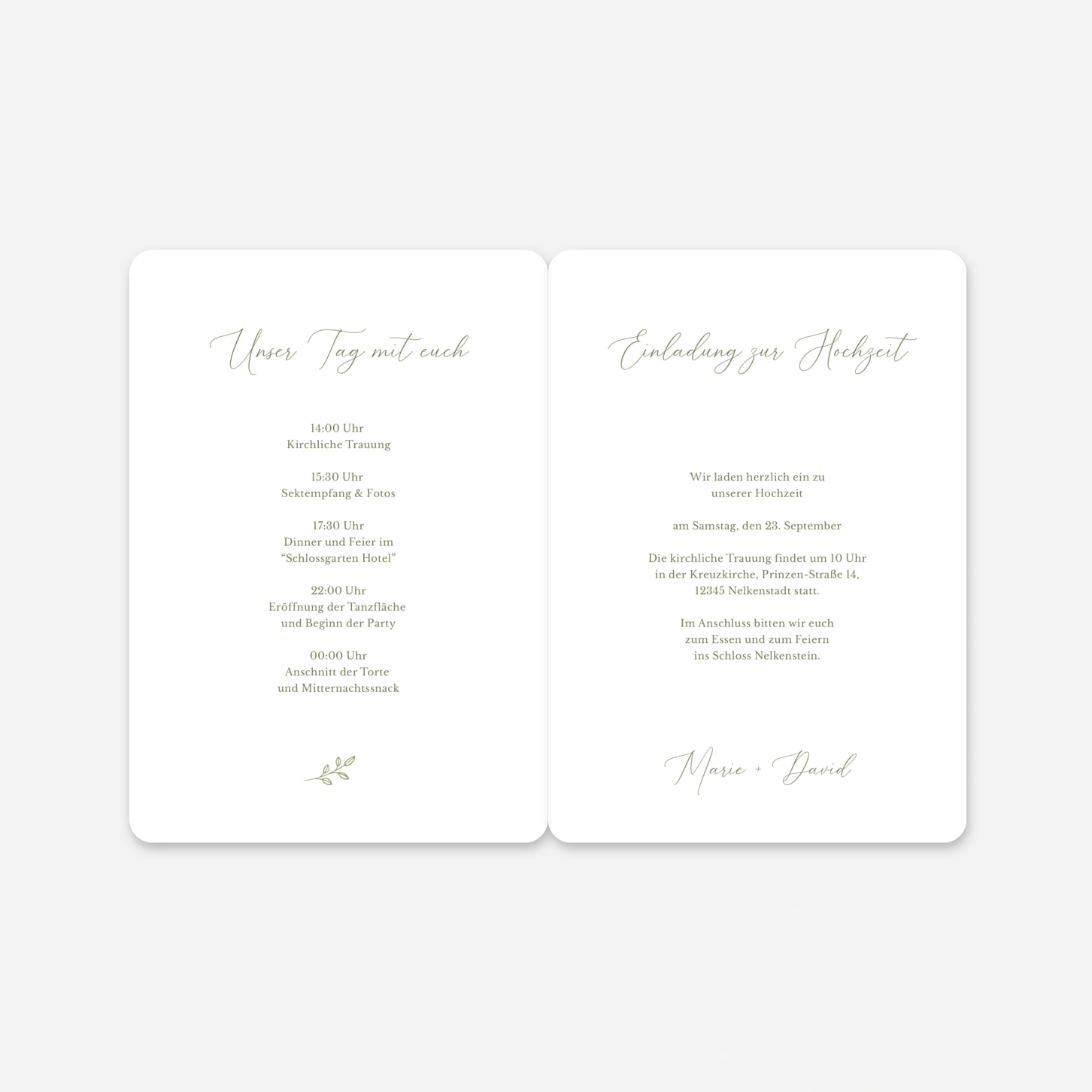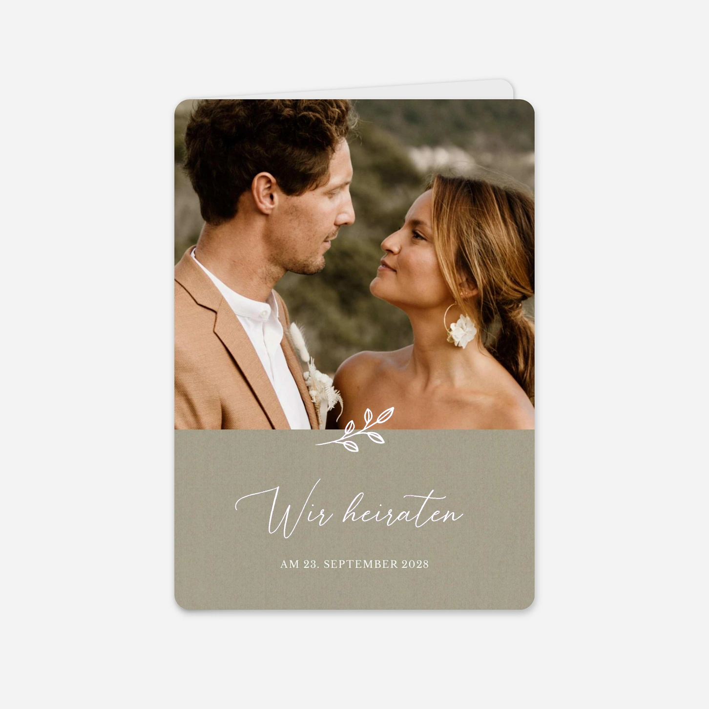 Die Hochzeitseinladung „Glanz der Natur“ verleiht Ihrem großen Tag eine harmonische, natürliche Note. Das puristische Design mit feiner Typografie und einem zarten Blattmotiv verbindet schlichte Eleganz mit moderner Romantik. Sie können Ihre Einladung zur Hochzeit ganz einfach online gestalten und mit Ihren persönlichen Texten und Fotos veredeln. Gedruckt wird in unseren eigenen Ateliers in Deutschland und Frankreich auf hochwertigem Papier – für einen edlen, nachhaltigen Look. Bestellen Sie jetzt Ihr kostenloses Muster und überzeugen Sie sich selbst von der Qualität.