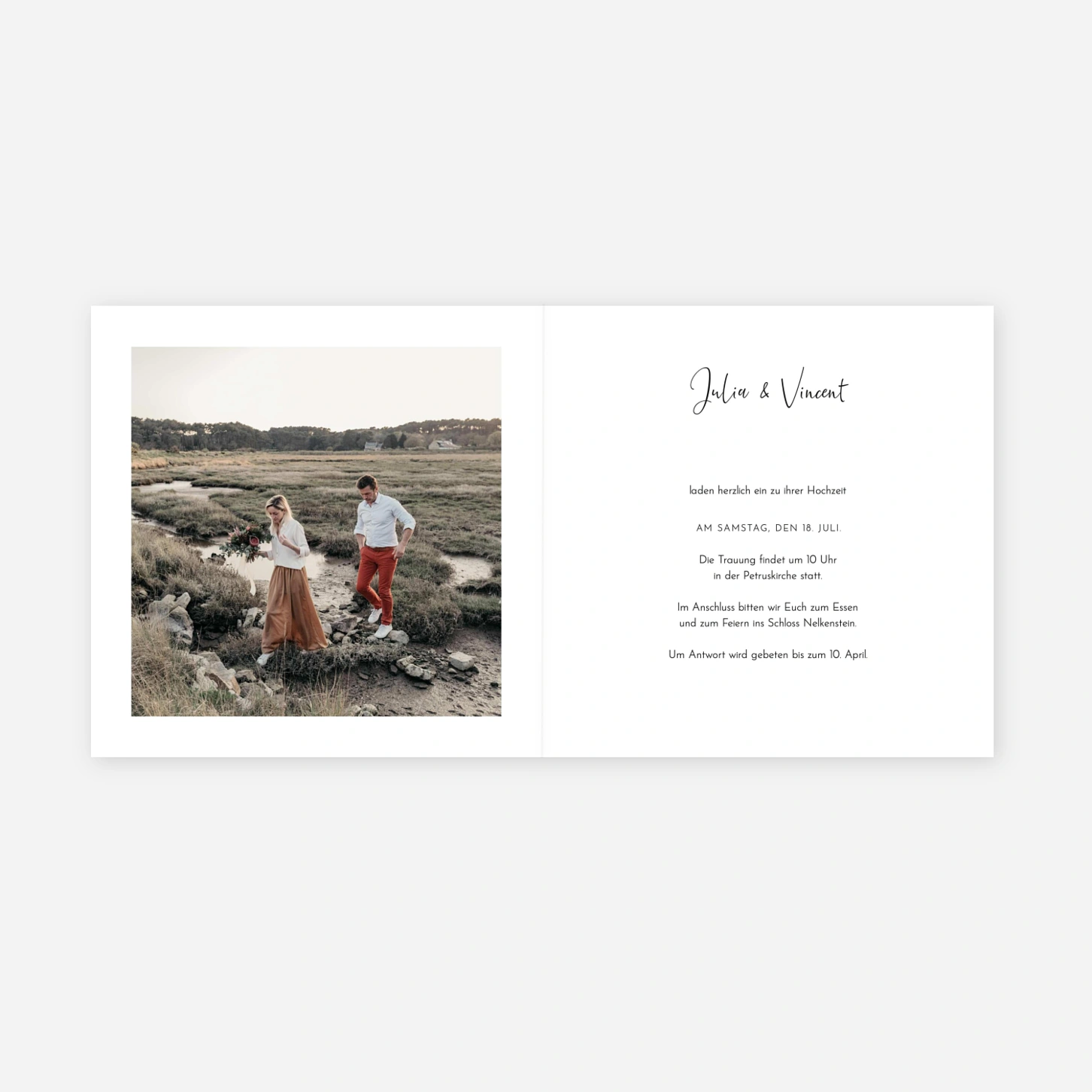 Sitzend in einem zarten, blühenden Garten entführen uns diese liebevoll illustrierten Brautleute in eine Umarmung aus Natur und Liebe. Die Hochzeitseinladung "Landblume (Garten)“ schafft eine intime und warme Atmosphäre, um Ihren großen Tag auf besonders sanfte Weise anzukündigen. Das vierseitige Format bietet im Inneren Platz für ein schönes Foto Ihres Paares und Ihren Einladungstext in schlichter Gestaltung. Die Illustrationen der Brautleute sind in verschiedenen Varianten erhältlich, um Ihr Paar bestmöglich darzustellen. Ein professioneller Retuschierservice ist in Ihrer Bestellung enthalten und garantiert ein optimales Ergebnis. Der hochwertige Druck erfolgt auf sorgfältig ausgewählten Kreativpapieren.