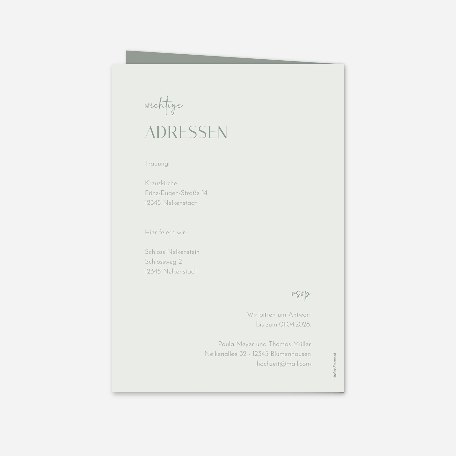Die Hochzeitseinladung „Liebesrausch“ verbindet schlichte Eleganz mit einem Hauch moderner Raffinesse. Klare Typografie und ein harmonisches Layout lassen Ihre Namen und den großen Tag stilvoll in den Mittelpunkt treten – perfekt für Paare, die Wert auf zeitloses Design legen. Gedruckt auf hochwertigem Papier in unseren eigenen Werkstätten in Deutschland und Frankreich überzeugt diese Einladung durch höchste Qualität und Liebe zum Detail. Bestellen Sie jetzt ein kostenloses Muster und gestalten Sie Ihre Einladung zur Hochzeit ganz individuell online.