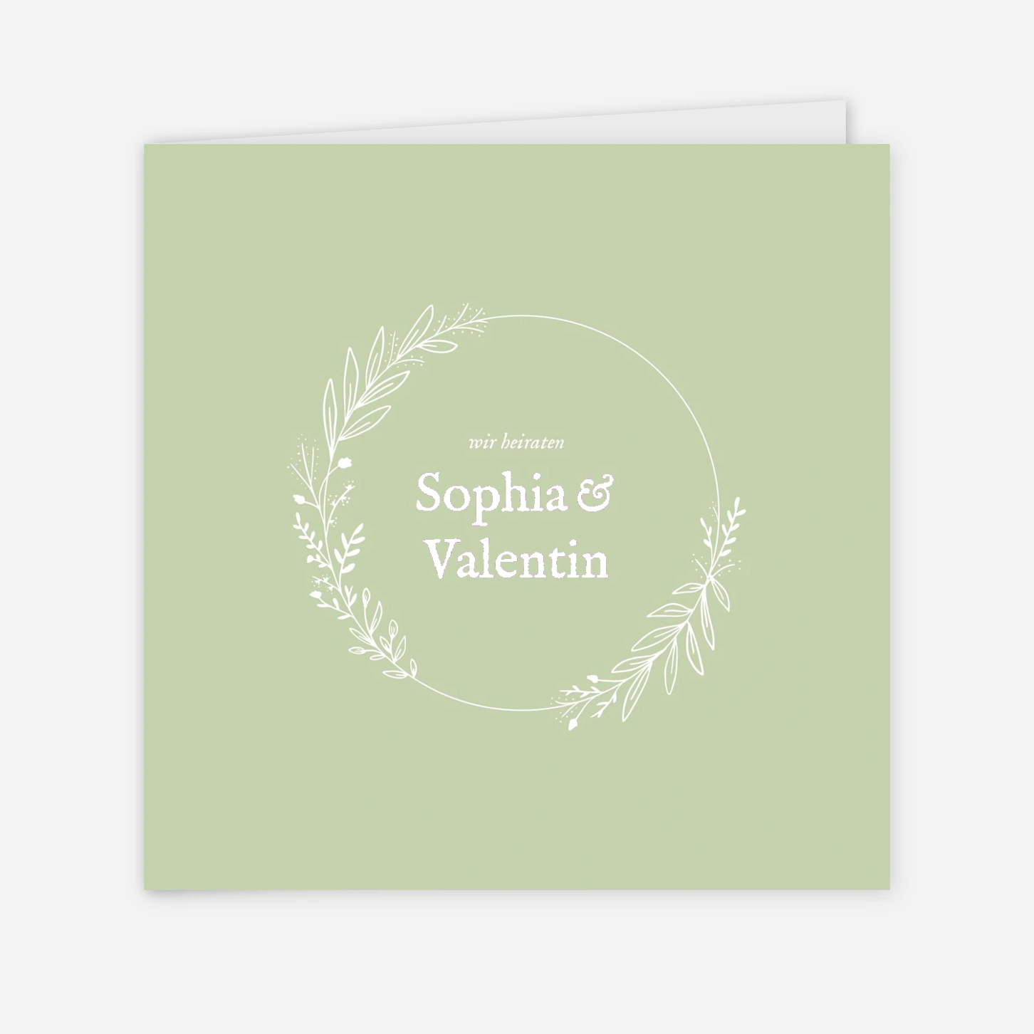Die Hochzeitseinladung "Liebesschimmer" verzaubert mit einem filigranen Kranz, der die elegante Typografie sanft umrahmt. Dieses schlichte und zugleich romantische Design strahlt natürliche Harmonie und zeitlose Eleganz aus.