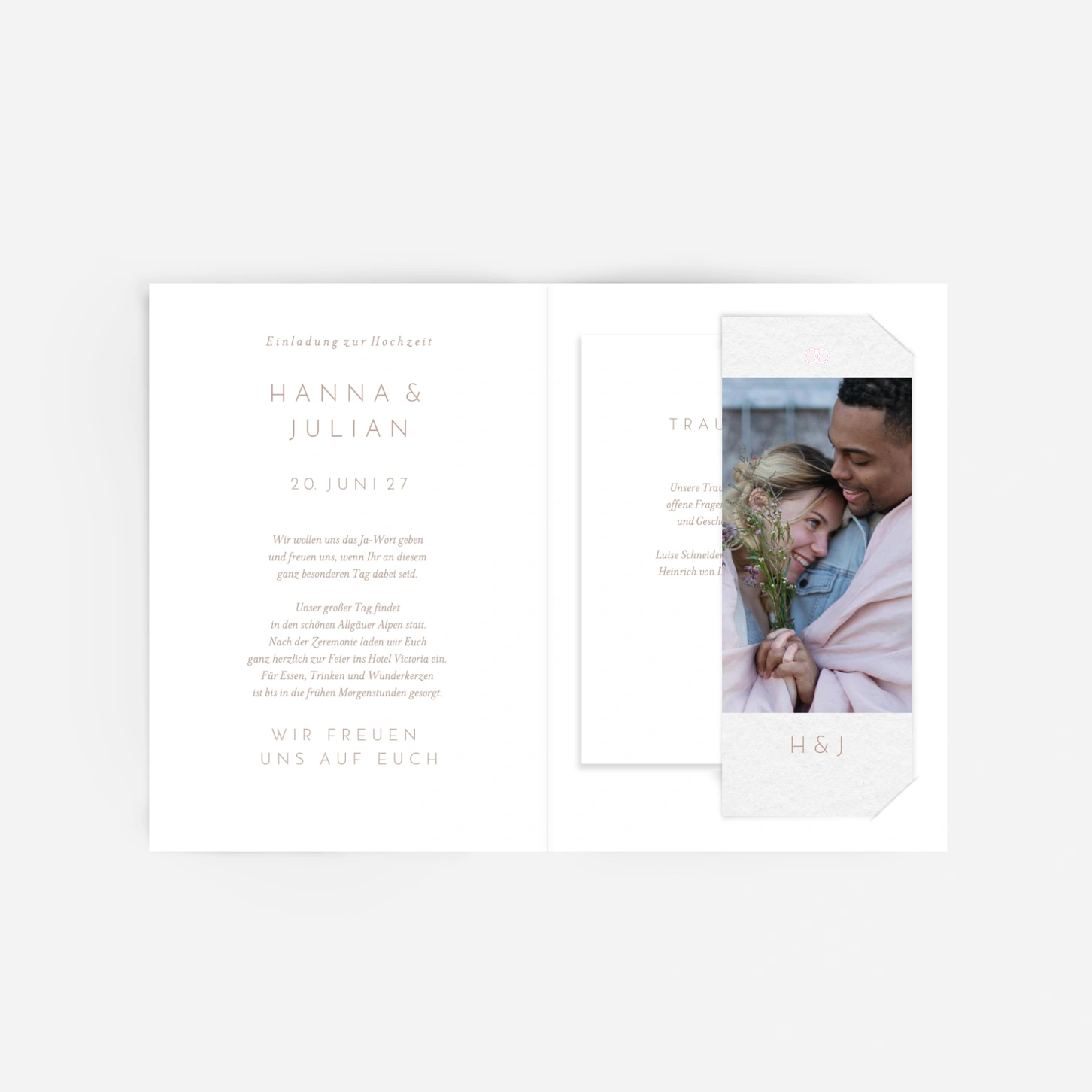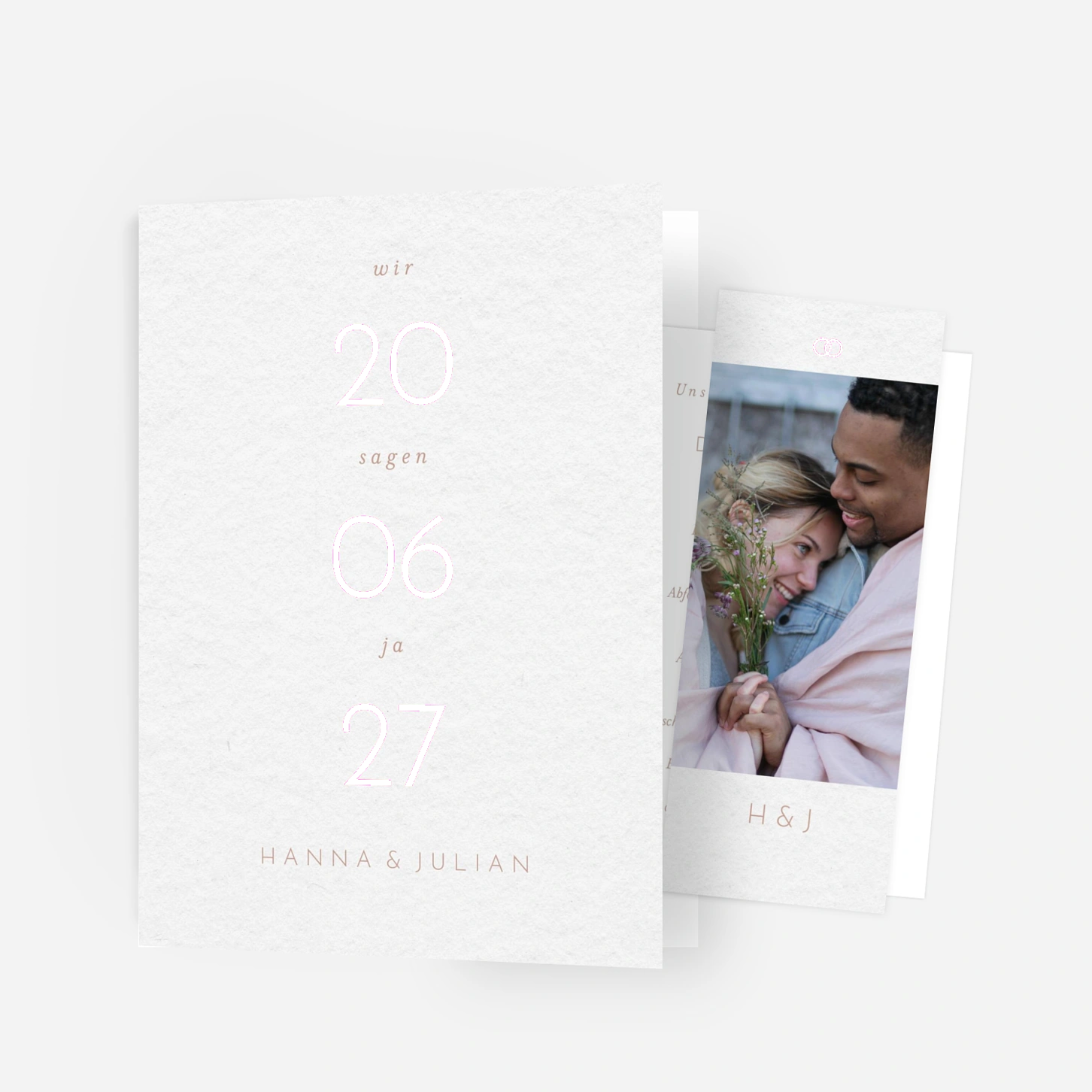 Die stilvolle Hochzeitseinladung "Minimalistische Eleganz" ist perfekt für Paare, die Wert auf Ästhetik und hochwertige Gestaltung legen,. Die Karte überzeugt mit ihrer schlichten Raffinesse, dieses Design passt zu jedem Anlass. Überraschen Sie Ihre Gäste mit einer Einladung, die Liebe und Vorfreude stilvoll zum Ausdruck bringt. Gestalten Sie Ihre Hochzeitseinladung einzigartig und setzen Sie den ersten unvergesslichen Akzent für Ihren großen Tag!