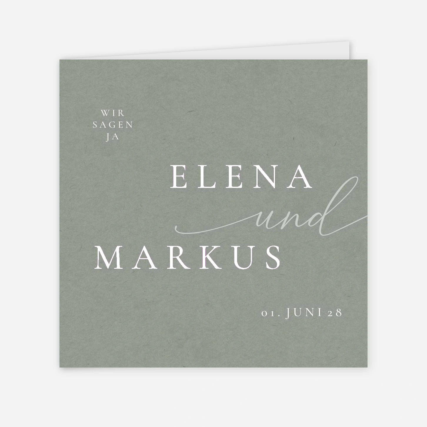 Die Hochzeitseinladung "Verbunden in Liebe" besticht durch ihre schlichte Eleganz und moderne Gestaltung. Die Namen des Brautpaares und das Hochzeitsdatum werden stilvoll hervorgehoben, was der Karte eine luxuriöse Note verleiht. Im Inneren bietet die Karte ausreichend Platz, um Ihren Gästen alle wichtigen Details und den Ablauf des besonderen Tages mitzuteilen. Die Kombination aus modernem Design und minimalistischer Typografie macht diese Einladung besonders ansprechend und zeitgemäß. Diese Einladung ist mehr als nur eine Information – sie ist ein stilvoller Vorgeschmack auf Ihren unvergesslichen Hochzeitstag.