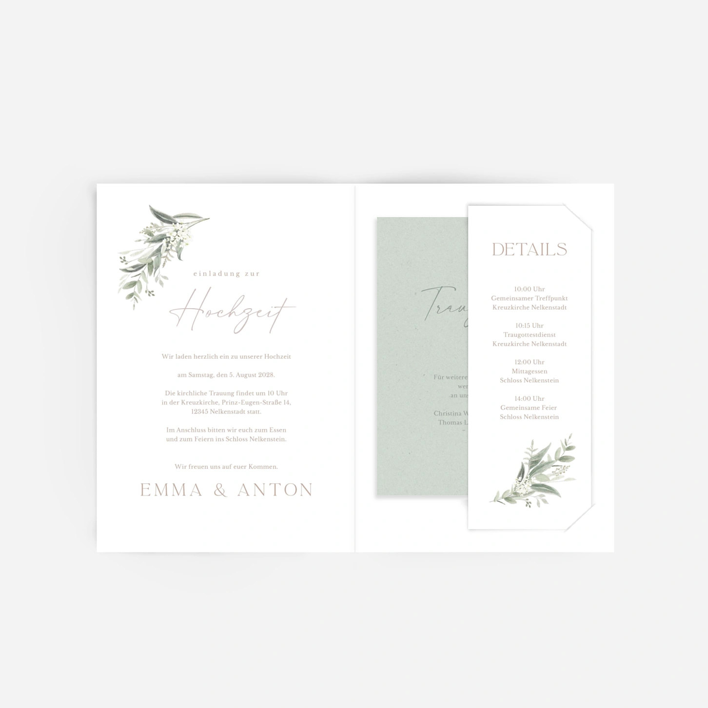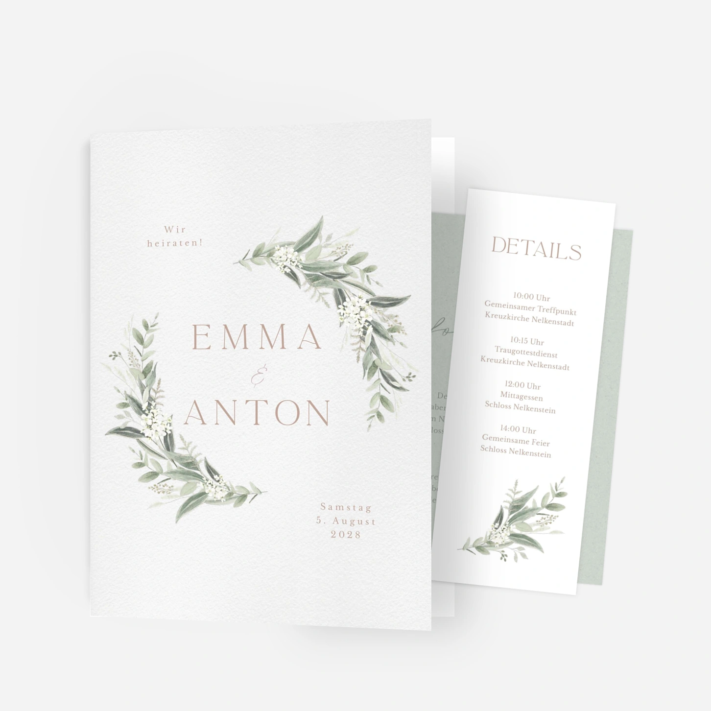 Die Hochzeitseinladung "Wilde Blüte" vereint natürliche Eleganz mit modernem Charme und ist ideal für alle, die ihre Liebe in einem authentischen, stilvollen Rahmen feiern möchten. Das florale Design mit zarten Blättern und feinen Details verleiht Ihrer Einladung eine warme, persönliche Note. Jede Karte wird mit größter Sorgfalt in unseren eigenen Werkstätten in Deutschland und Frankreich gefertigt. Bestellen Sie jetzt ein kostenloses Muster und gestalten Sie Ihre Einladung zur Hochzeit ganz nach Ihren Wünschen.