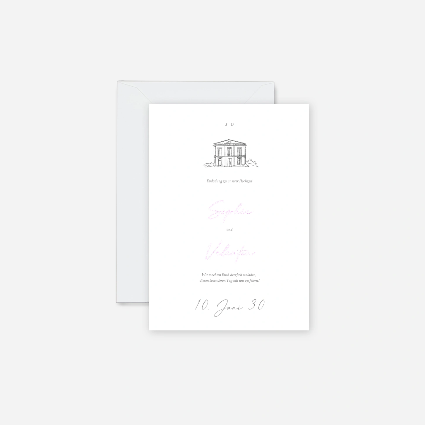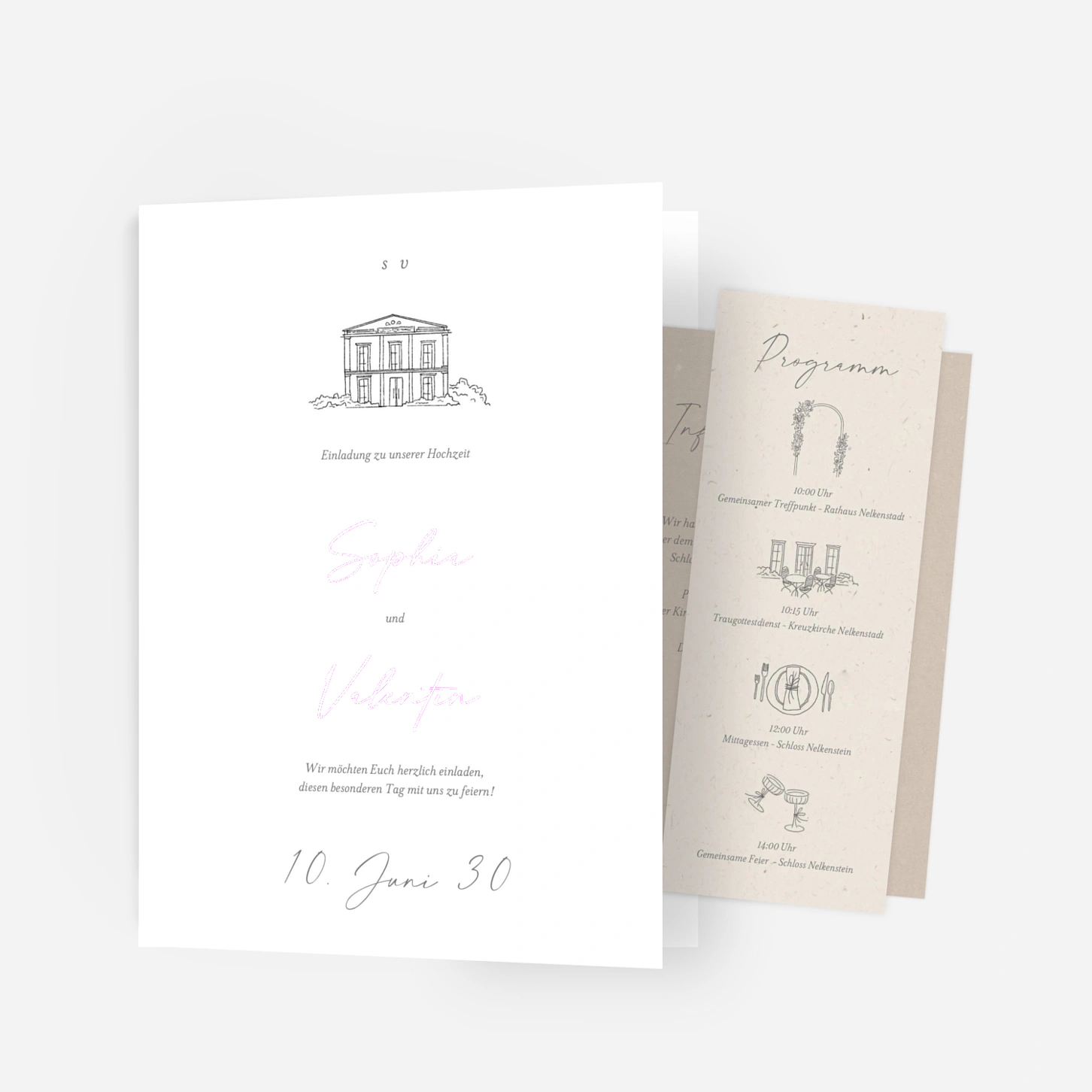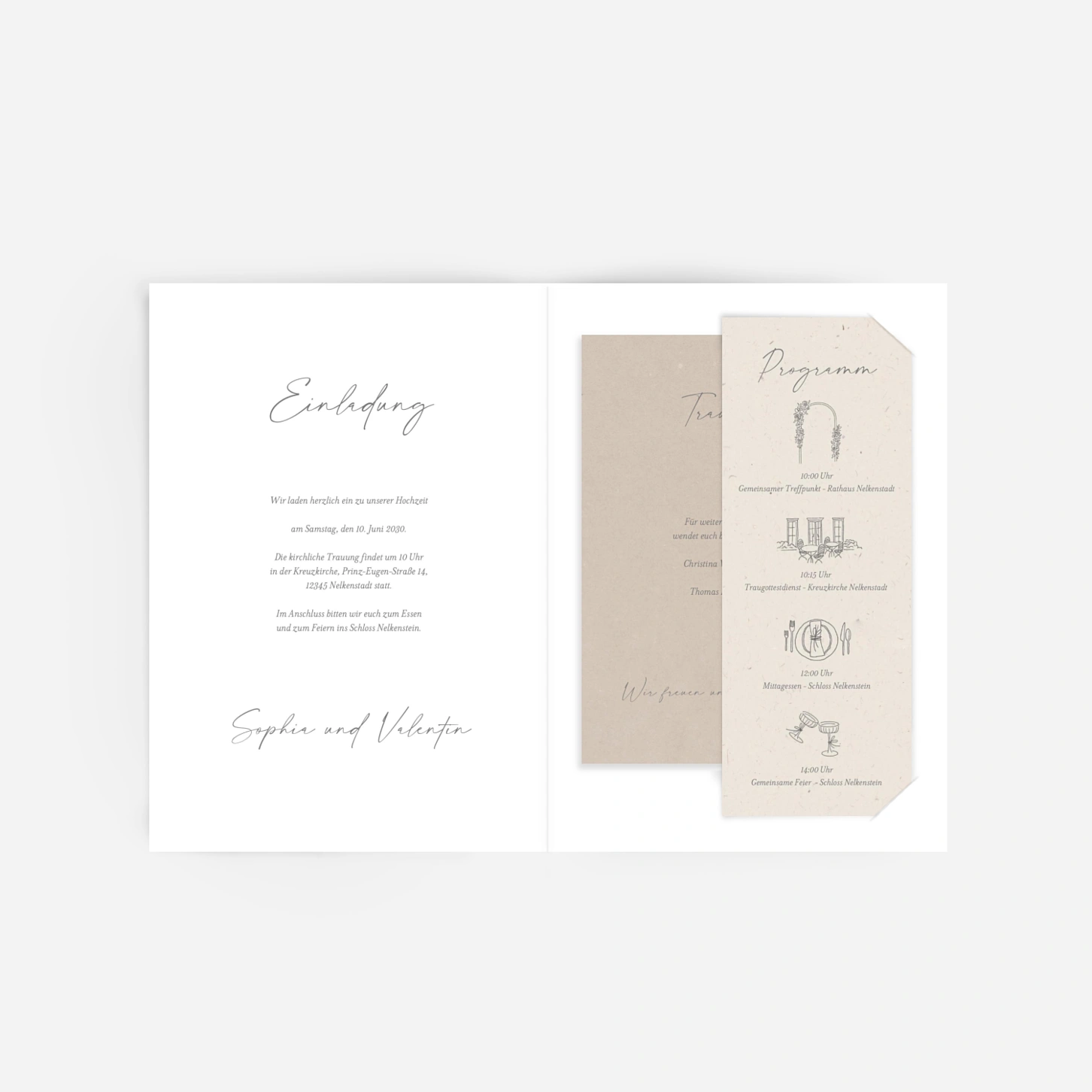 Die Hochzeitseinladung „Zarte Begegnung“ verbindet elegante Zurückhaltung mit einem Hauch verträumter Romantik und bietet Ihnen eine stilvolle Bühne für Ihre Ankündigung. Die feine Illustration und die harmonische Typografie schaffen einen ruhigen, sehr persönlichen Moment, der Ihre Gäste bereits beim Öffnen berührt. Jede Einladung wird in unseren eigenen Ateliers in Deutschland und Frankreich mit großer Sorgfalt gefertigt – perfekt, wenn Sie Ihre Einladung zur Hochzeit drucken lassen möchten. Nutzen Sie gern unseren kostenlosen Muster-Service, um die Karte vorab in den Händen zu halten.
