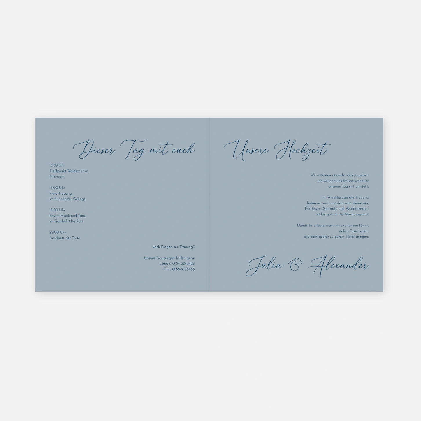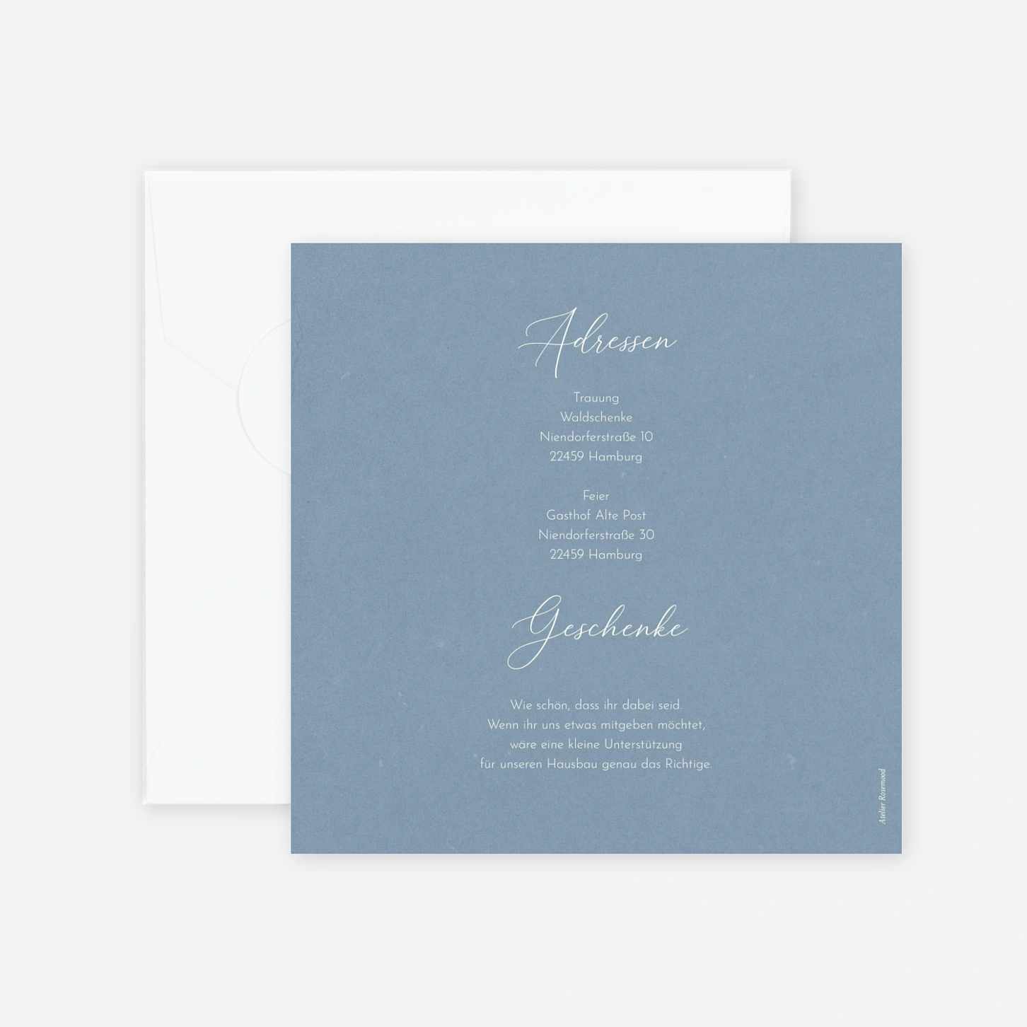 Die Hochzeitseinladung „Zarte Papeterie“ überzeugt mit einer ruhigen, eleganten Gestaltung, die Ihrer Einladung zur Hochzeit eine zeitlose und persönliche Note verleiht. Feine Typografie und ein harmonisches Layout lassen Raum für Ihre Worte und machen diese Hochzeitseinladung ideal, um Ihren großen Tag stilvoll anzukündigen. Wenn Sie Ihre Hochzeitseinladung gestalten und die Einladung zur Hochzeit drucken lassen möchten, profitieren Sie von unseren inhouse entworfenen Designs und der sorgfältigen Produktion in unseren eigenen Ateliers in Deutschland und Frankreich. Gut zu wissen: Für Hochzeitseinladungen erhalten Sie bei Rosemood ein kostenloses Musterpaket, um sich in Ruhe von Qualität und Gestaltung zu überzeugen.