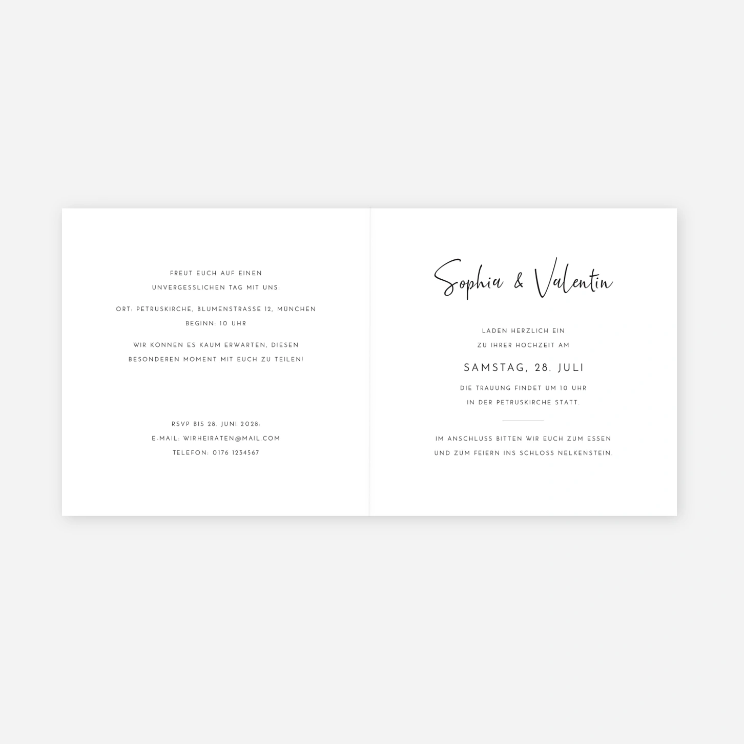 Laden Sie Ihre Gäste mit der schicken Hochzeitseinladung Zeitgeist zu Ihrem Fest ein! Die Einladungskarte ist in einem zeitlosen und schlichten Stil gehalten und in verschiedenen Farbvarianten erhältlich. Falls Sie eine andere Hintergrundfarbe wünschen, können Sie sich mit unserem Kundenservice in Verbindung setzen und sich über weitere Personalisierungsmöglichkeiten informieren lassen. Die Schriftfarbe und -art können Sie in unserem online Editor kinderleicht Ihrem Geschmack anpassen. Dafür stehen Ihnen zahlreiche tolle moderne Schriftarten zur Wahl.
