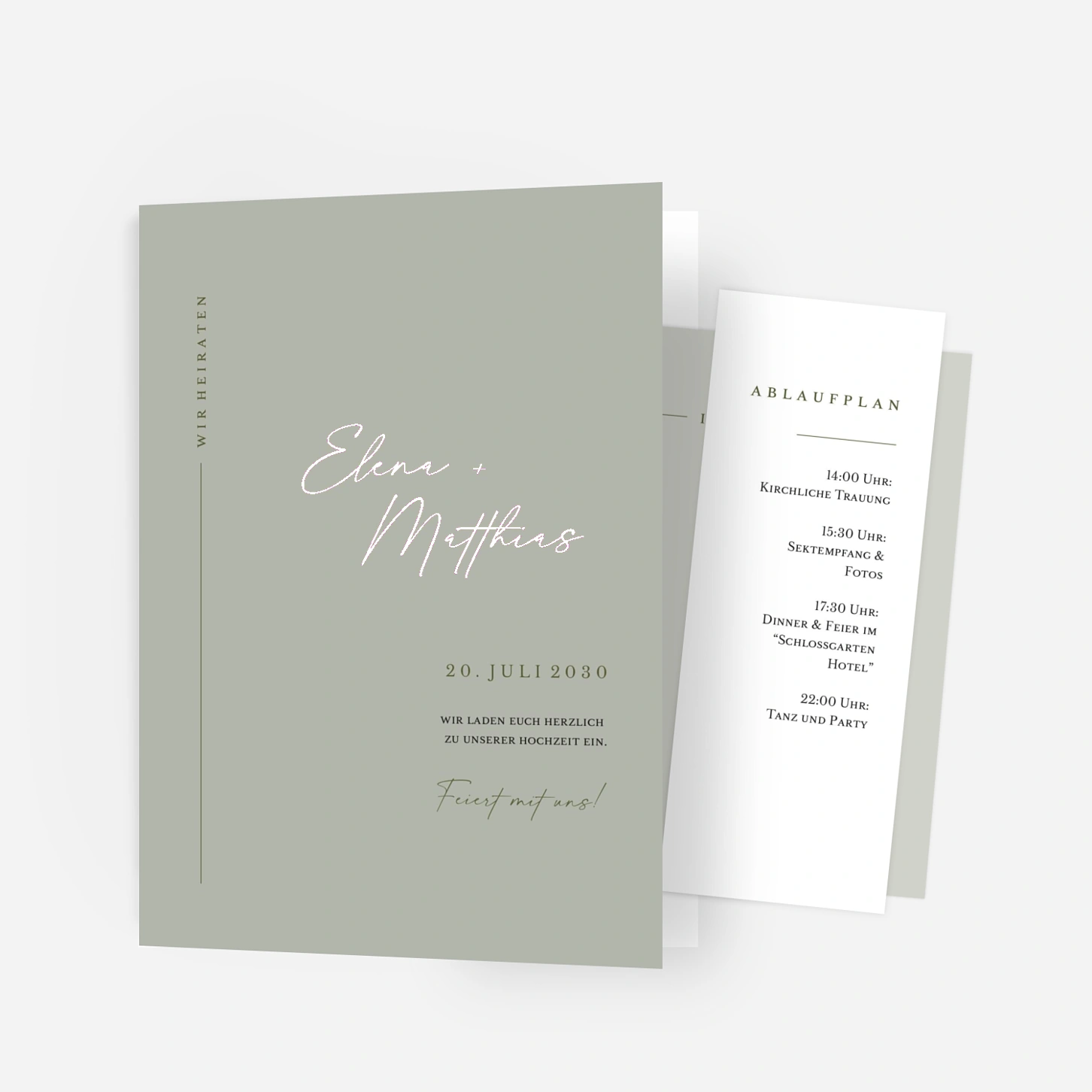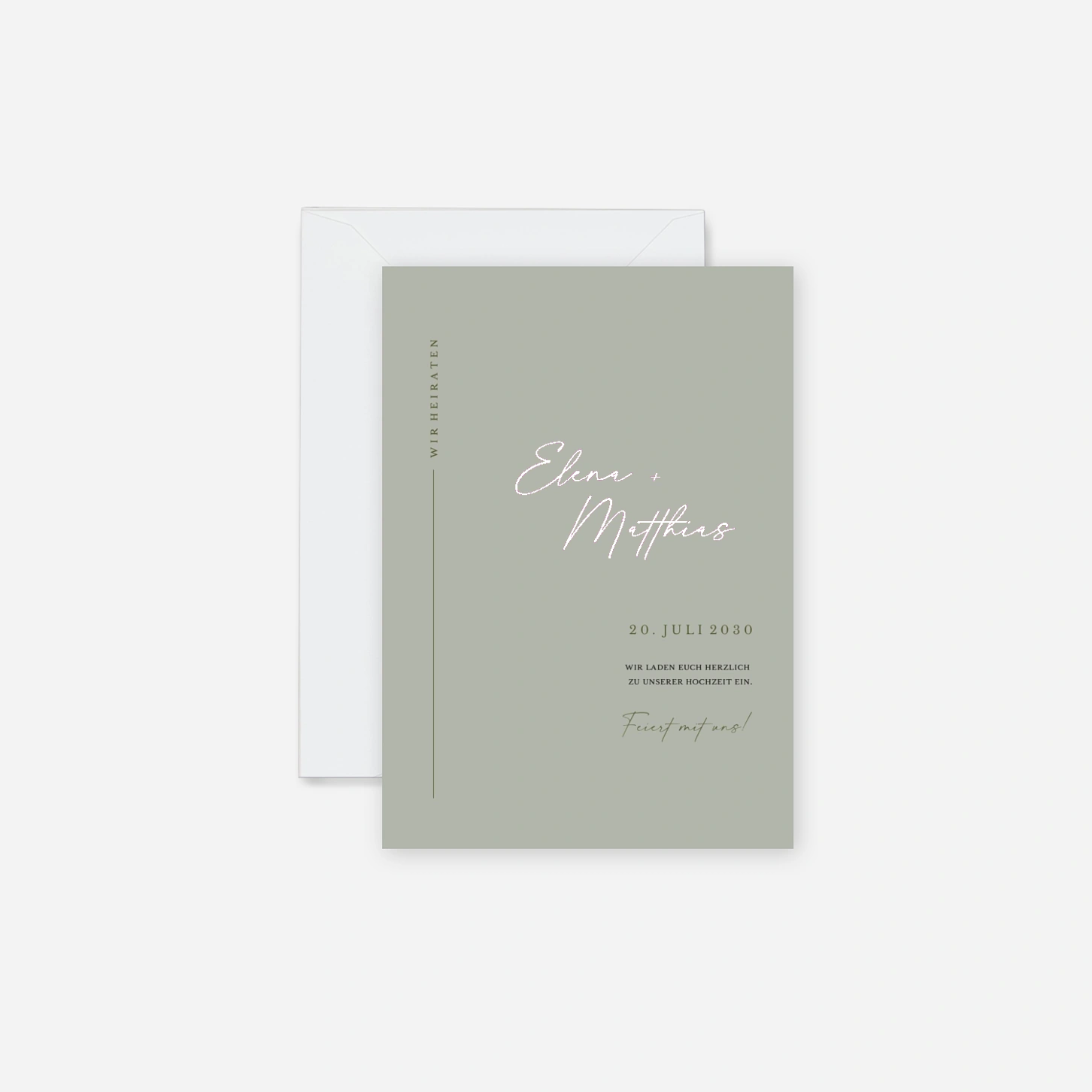 Die klare Typografie und die minimalistische Gestaltung der Hochzeitseinladung "Zeitlose Eleganz" setzen die Namen des Brautpaares und das Hochzeitsdatum gekonnt in Szene. Die vertikale Anordnung der Textelemente verleiht der Einladung eine einzigartige Note, während die sorgfältig abgestimmten Farben eine angenehme, beruhigende Wirkung erzeugen. Mit ihrer dezenten, aber dennoch ausdrucksstarken Ästhetik spricht diese Karte Paare an, die Wert auf modernes und hochwertiges Design legen.