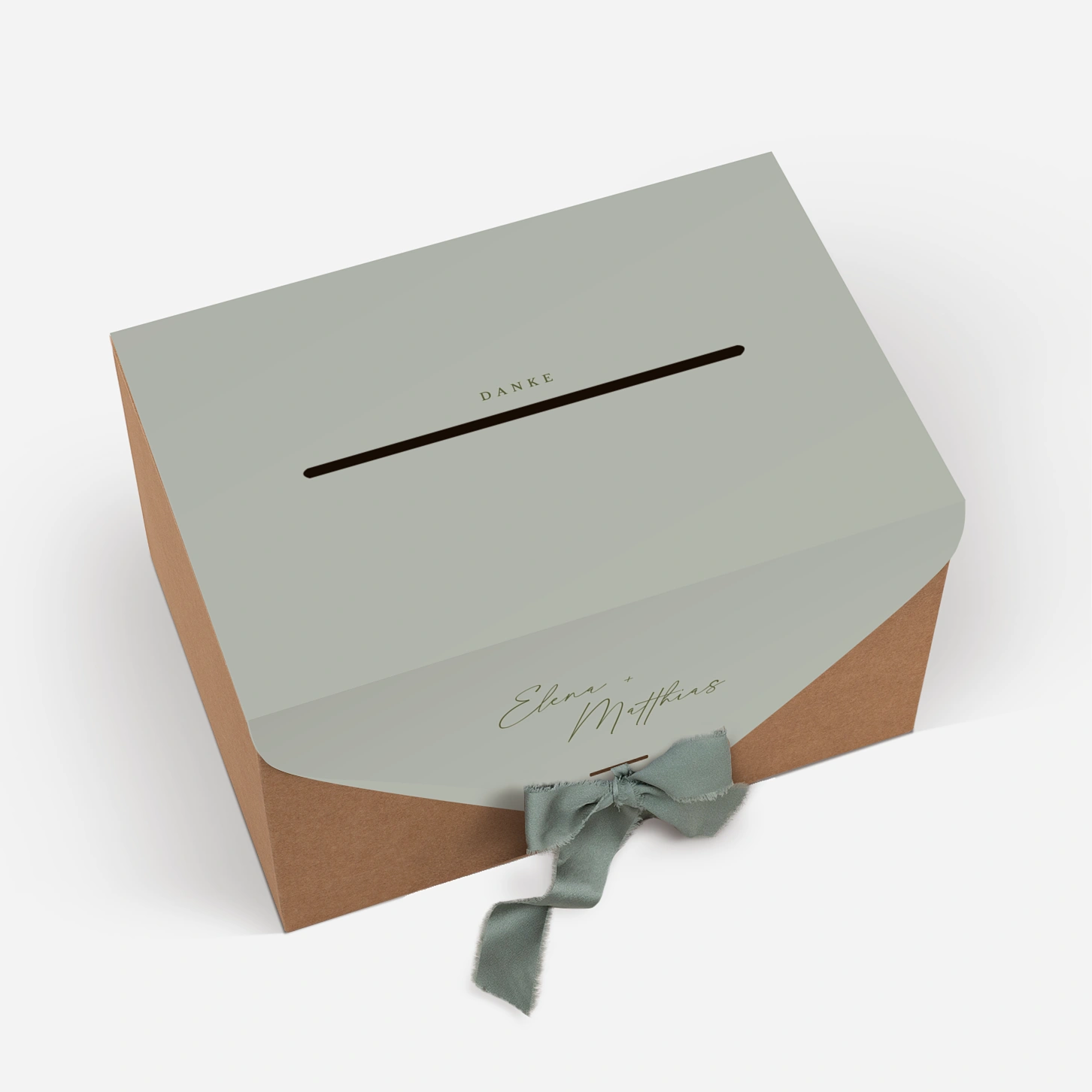 Harmonisch abgestimmt auf Ihre übrige Hochzeitspapeterie, fügt sich die Box dezent ins Gesamtbild ein und setzt zugleich einen liebevollen dekorativen Akzent – ganz im Stil Ihrer Feier."