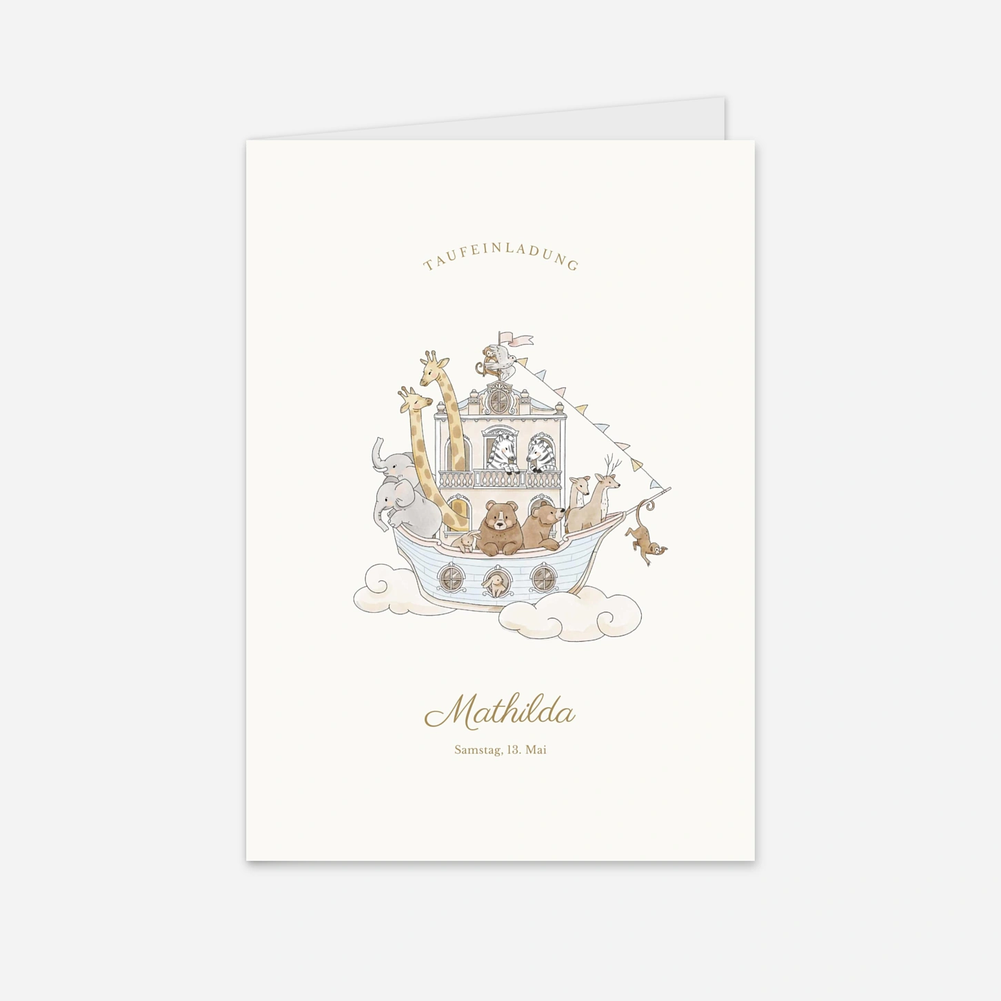 Mit dem Kirchenheft "Arche der Wunderwelt “ schenken Sie Ihren Gästen eine stilvolle Orientierung durch die Zeremonie. Das poetische und elegante Design begleitet Ihre Liebsten durch den Ablauf der Taufe und wird zu einem geschmackvollen Detail Ihrer Feier.