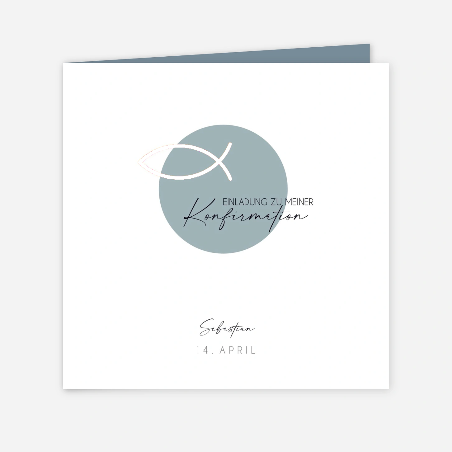 Laden Sie Ihre Familie und Freunde mit der Einladungskarte zur Konfirmation "Sanfter Segen" zu diesem bedeutenden christlichen Meilenstein ein, der durch schlichte Eleganz und eine moderne Ästhetik besticht. Das Design setzt mit einem filigranen, goldenen Fisch-Symbol einen glanzvollen Akzent auf einem sanft getönten Hintergrund und verleiht Ihrer Papeterie eine zeitlose Note. Jedes Motiv wird in unseren hauseigenen Ateliers mit viel Liebe zum Detail exklusiv für Sie entworfen. Wir fertigen Ihre Karten mit höchster Präzision in unserer eigenen Produktion in Deutschland oder Frankreich an. Gestalten Sie Ihre Einladungen zur Konfirmation jetzt ganz einfach online und verleihen Sie diesem besonderen Tag einen stilvollen Rahmen.